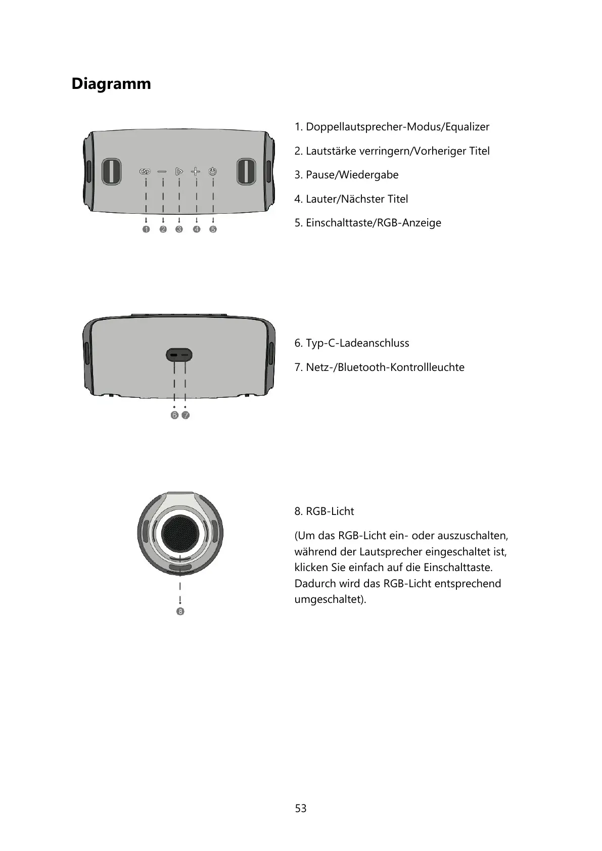 5. Einschalttaste/RGB-Anzeige