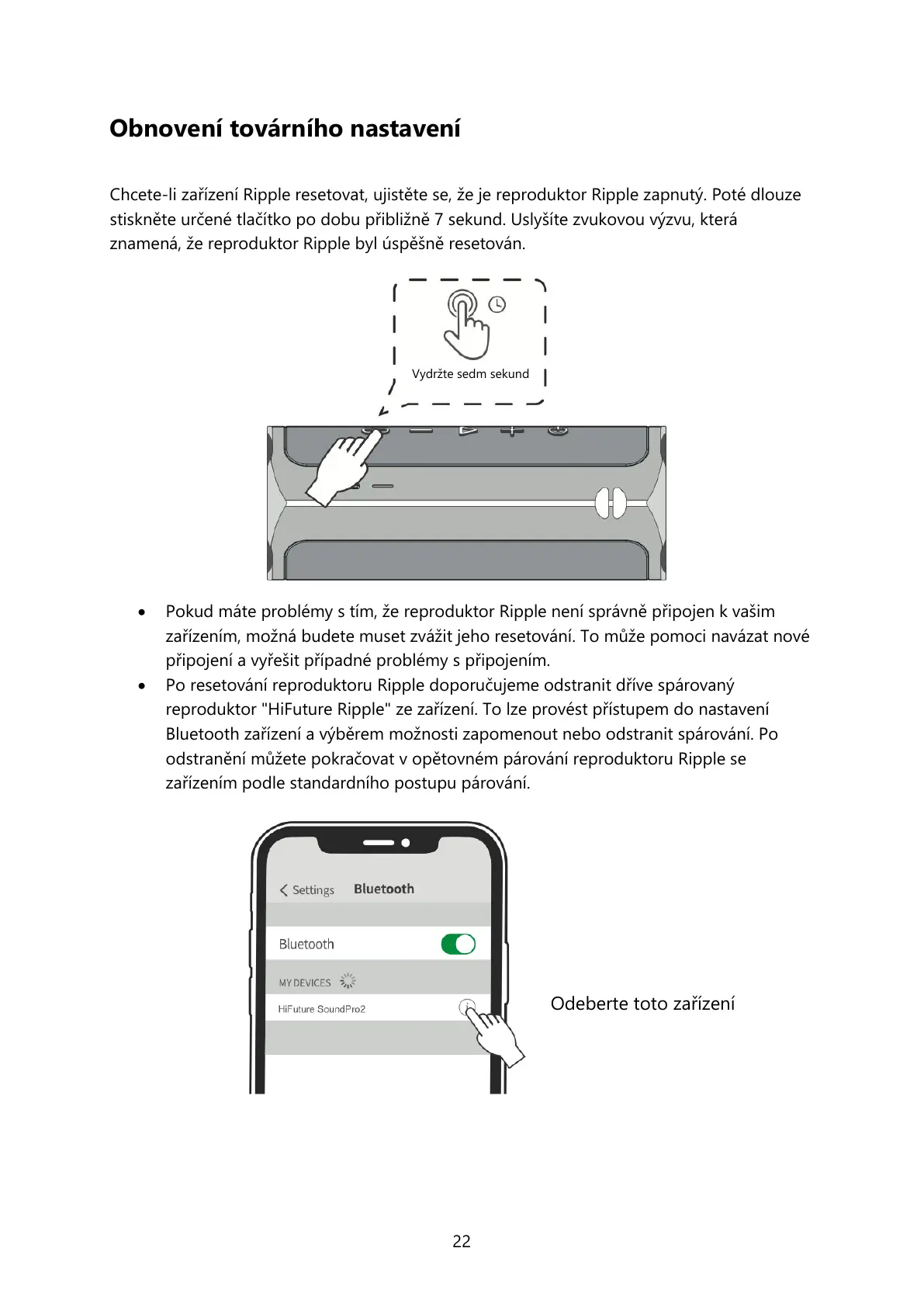 Po resetování reproduktoru Ripple doporučujeme odstranit dříve spárovaný