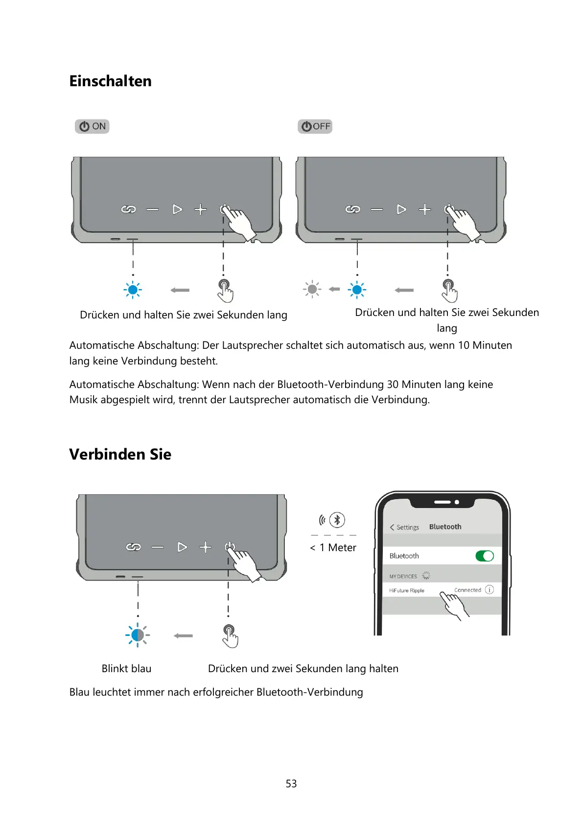 Musik abgespielt wird, trennt der Lautsprecher automatisch die Verbindung.