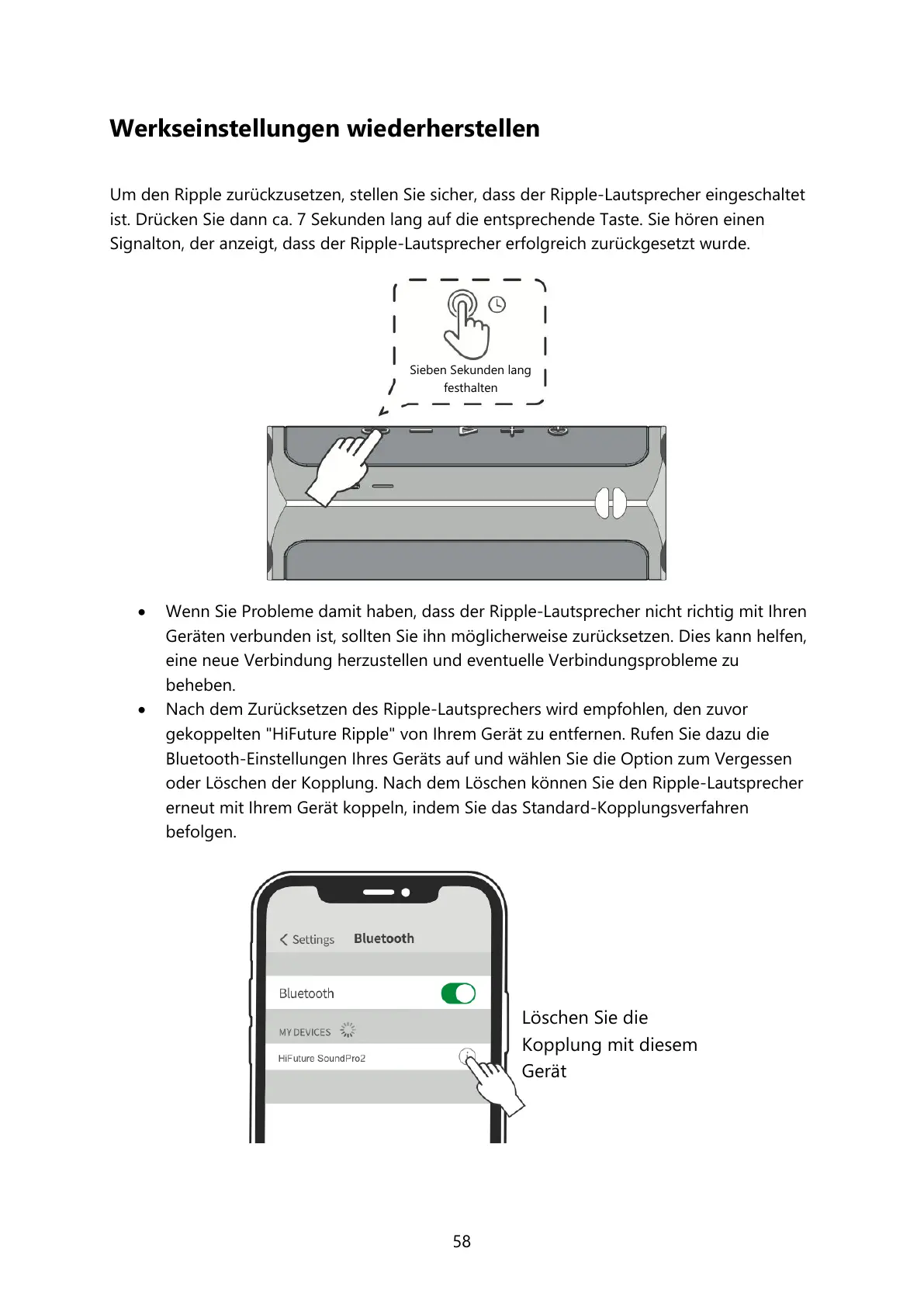 gekoppelten "HiFuture Ripple" von Ihrem Gerät zu entfernen. Rufen Sie dazu die