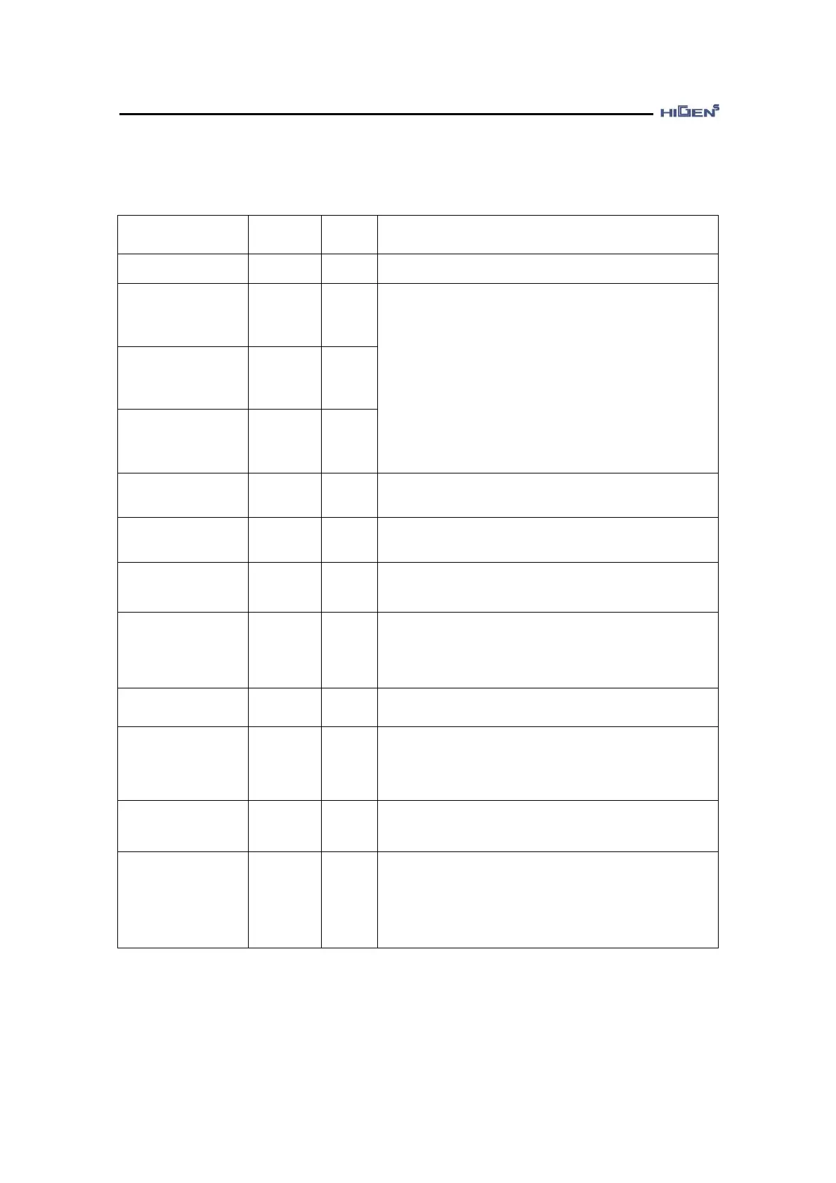2.3.3 Variable input signal function table (Based on manufactured default)