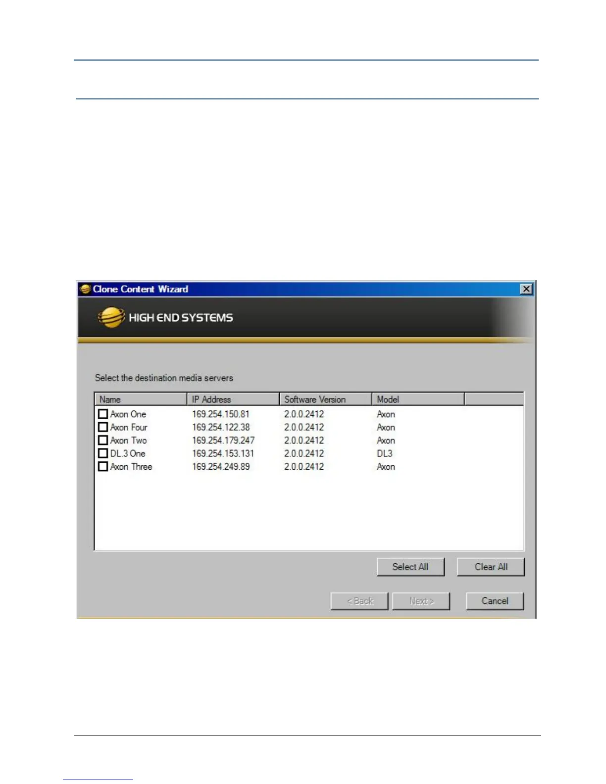 popup list. A Clone Content Wizard lets you select one or more servers on the fixture