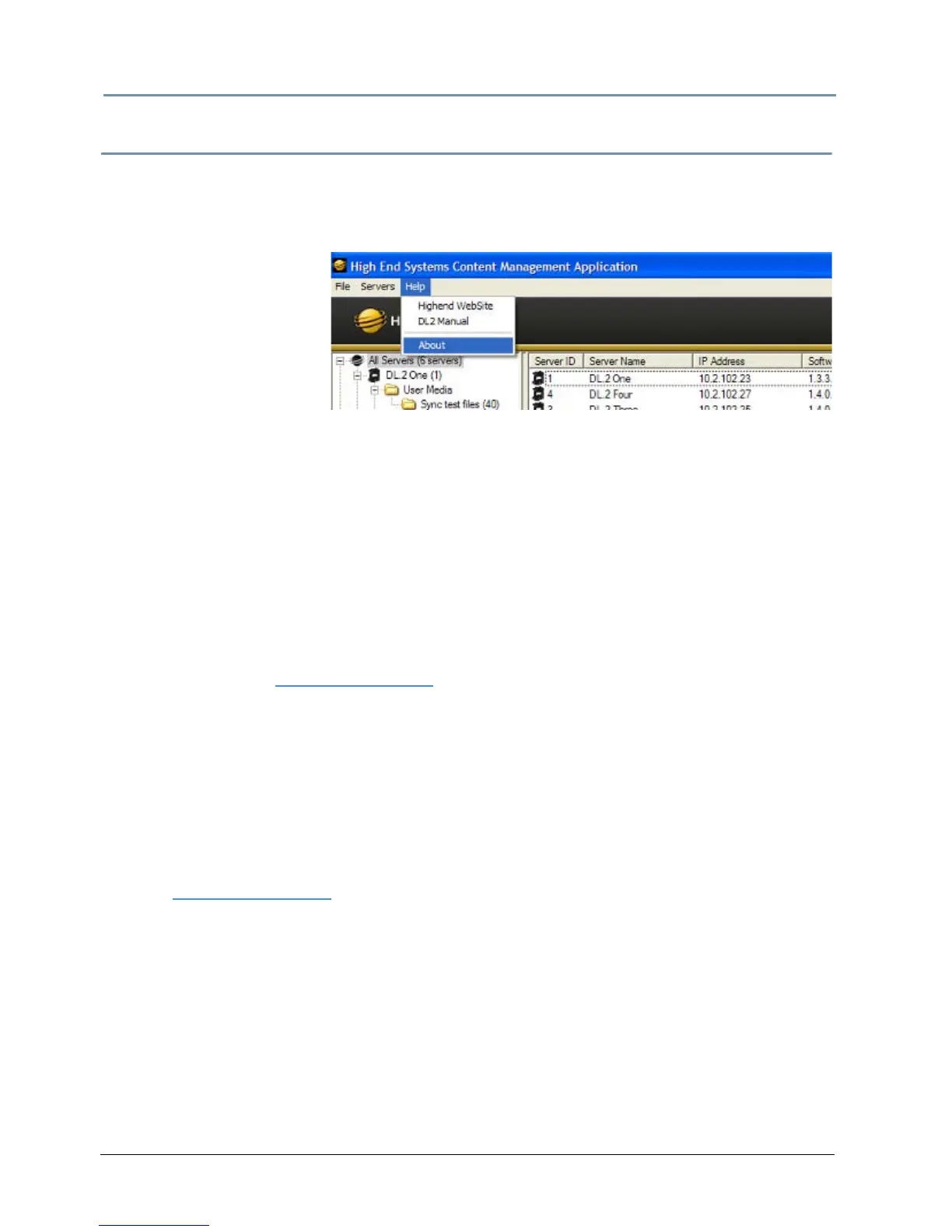 ut from the Help drop down menu. The media server