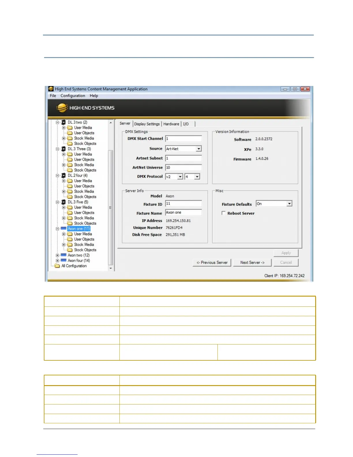 Axon configuration options are grouped under a Server tab and a Display Settings tab.