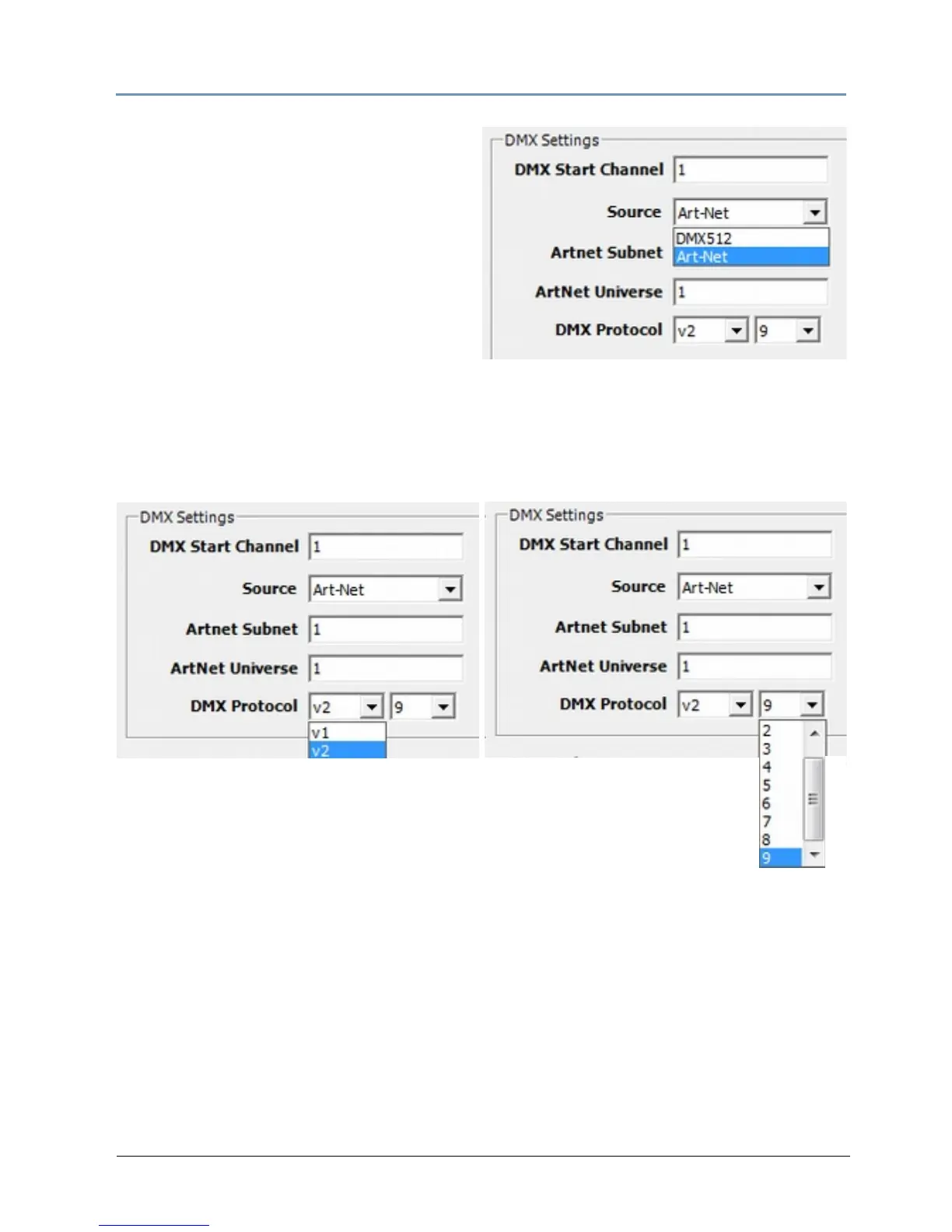 select DMX512 or Art-Net.