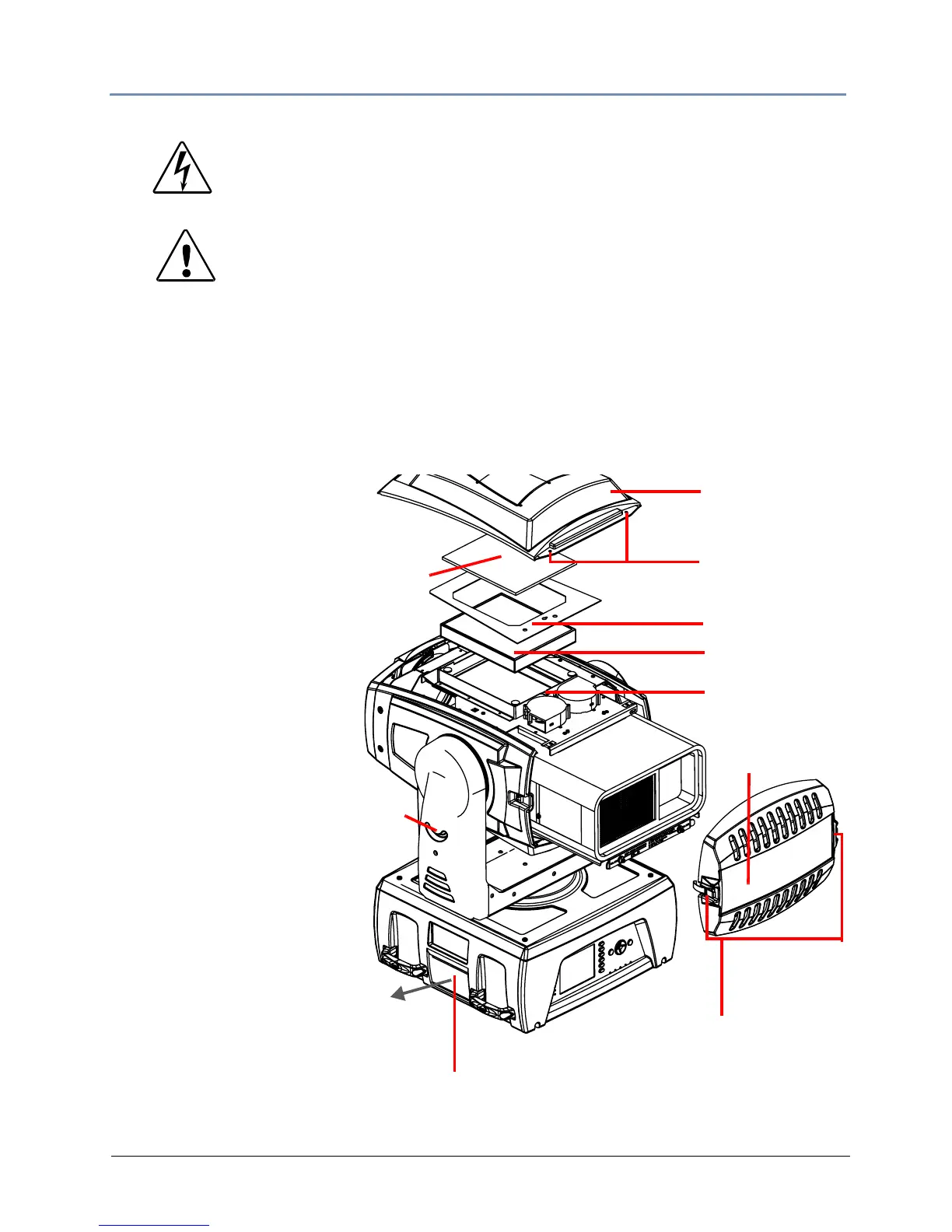 Do not operate a projector with Air Filter removed. Dust may