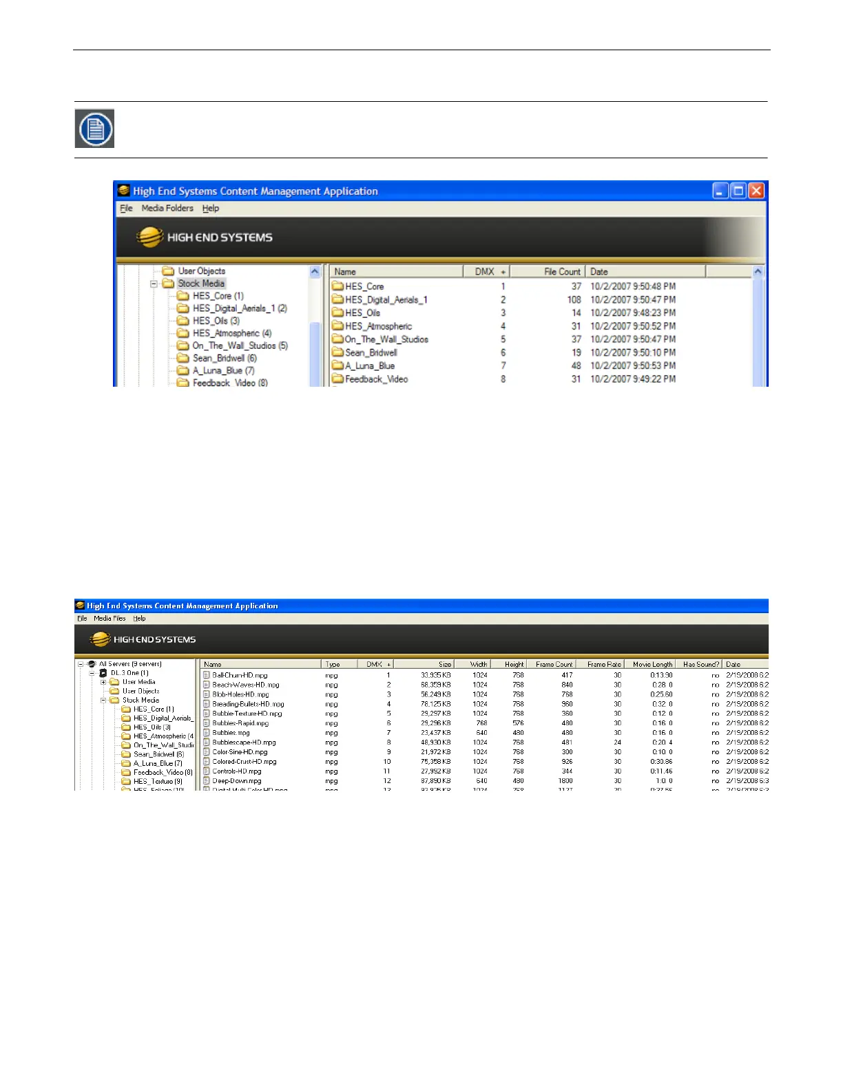 Double clicking on a media folder in the left pane reveals information about its content files.