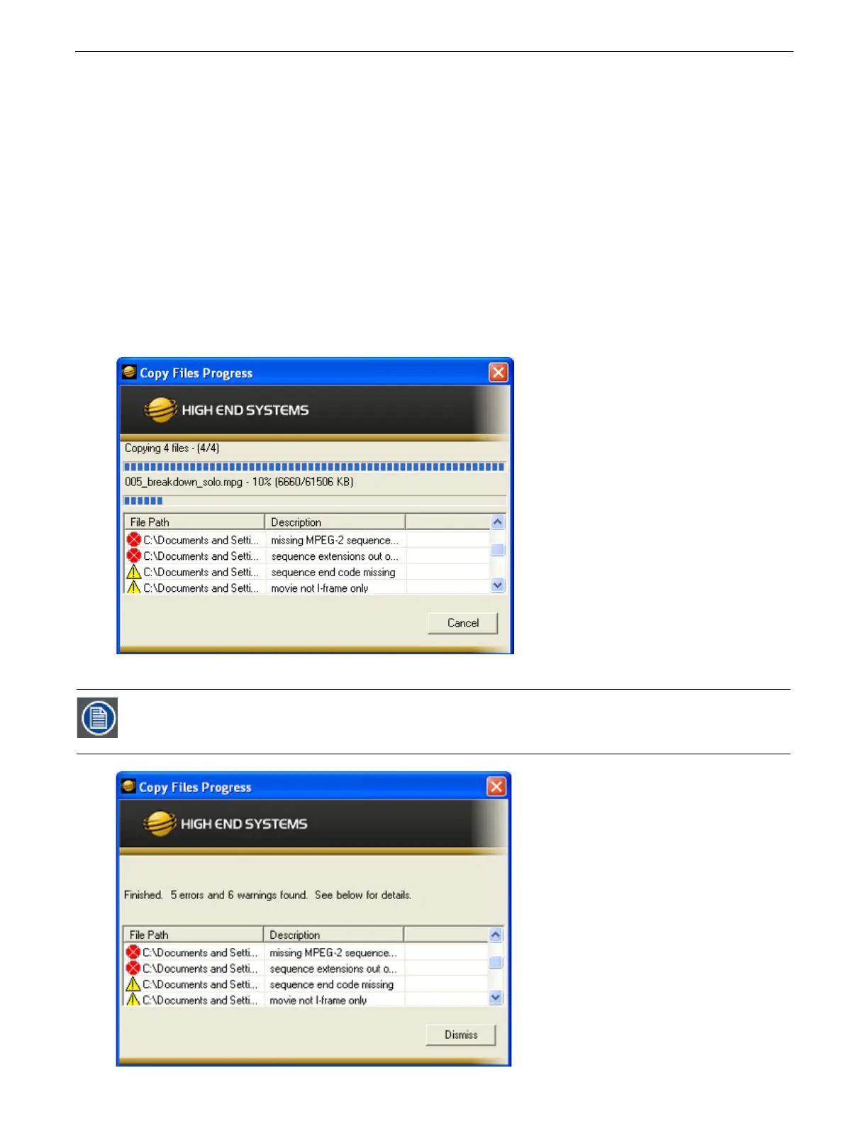 are problems that will potentially cause issues with playback of the media on the fixture, but won't affect graphics