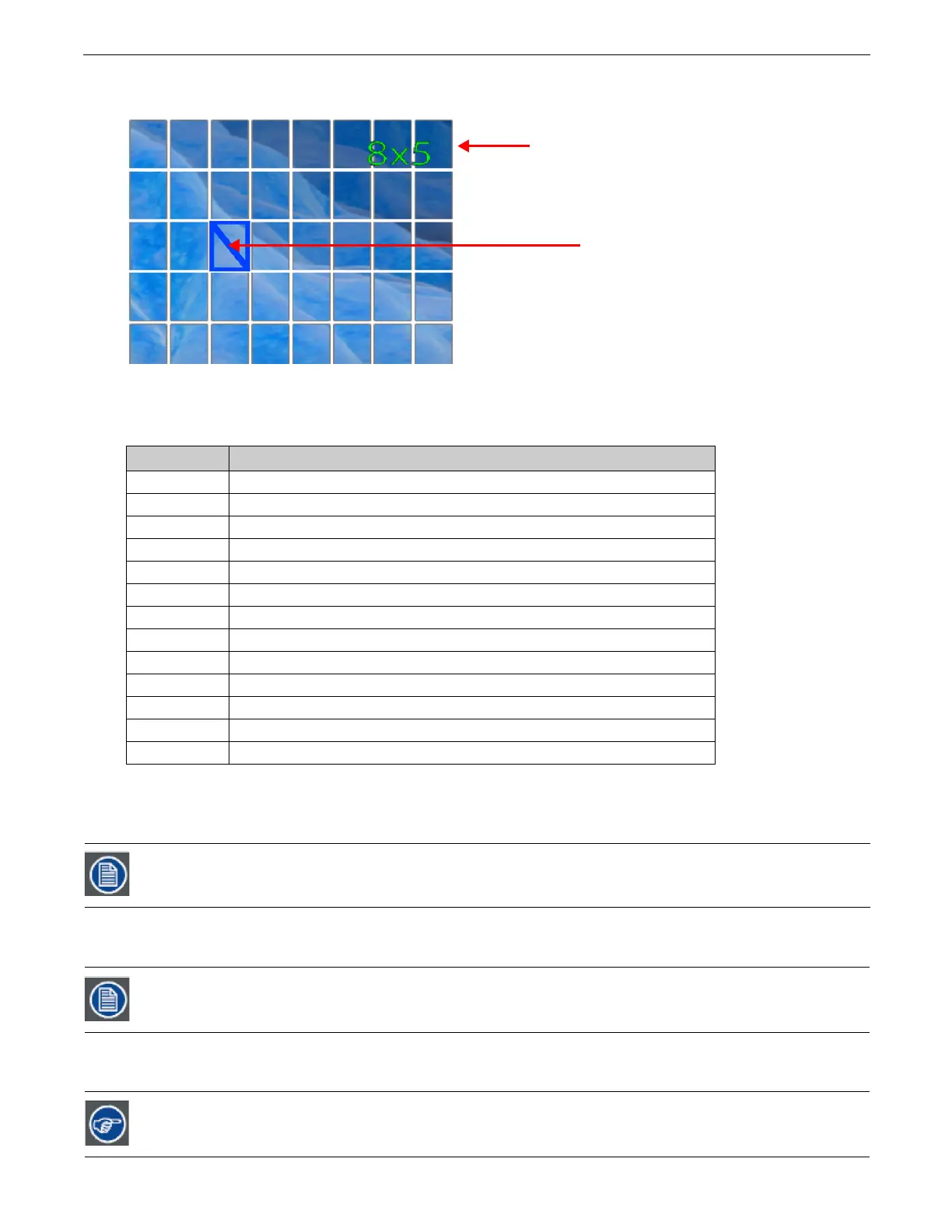 channel selects which cell of the grid a particular media server will display. DMX values 0 up to 127 are used to