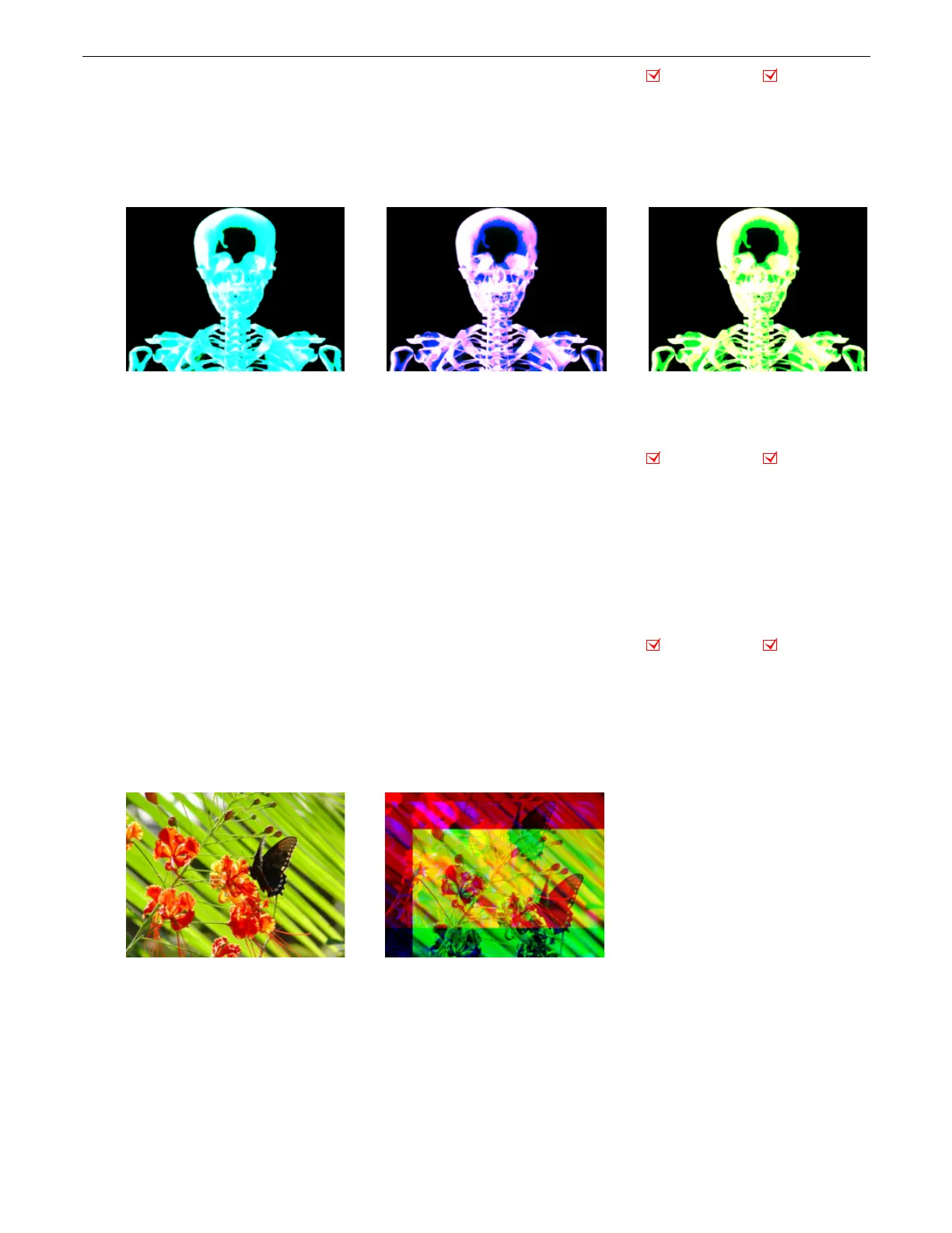 white, to normal image, to black. When RGB/CMY is added the image fades from the RGB value, to the image with color added.