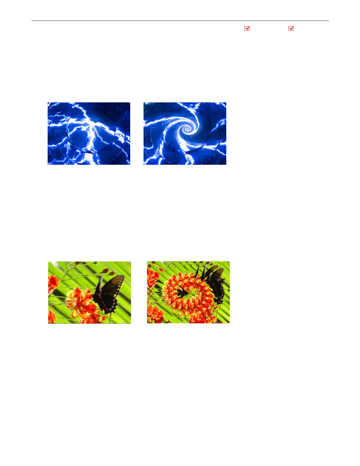 This effect introduces a twisted area to the image and allows to you size it and move it in the image.