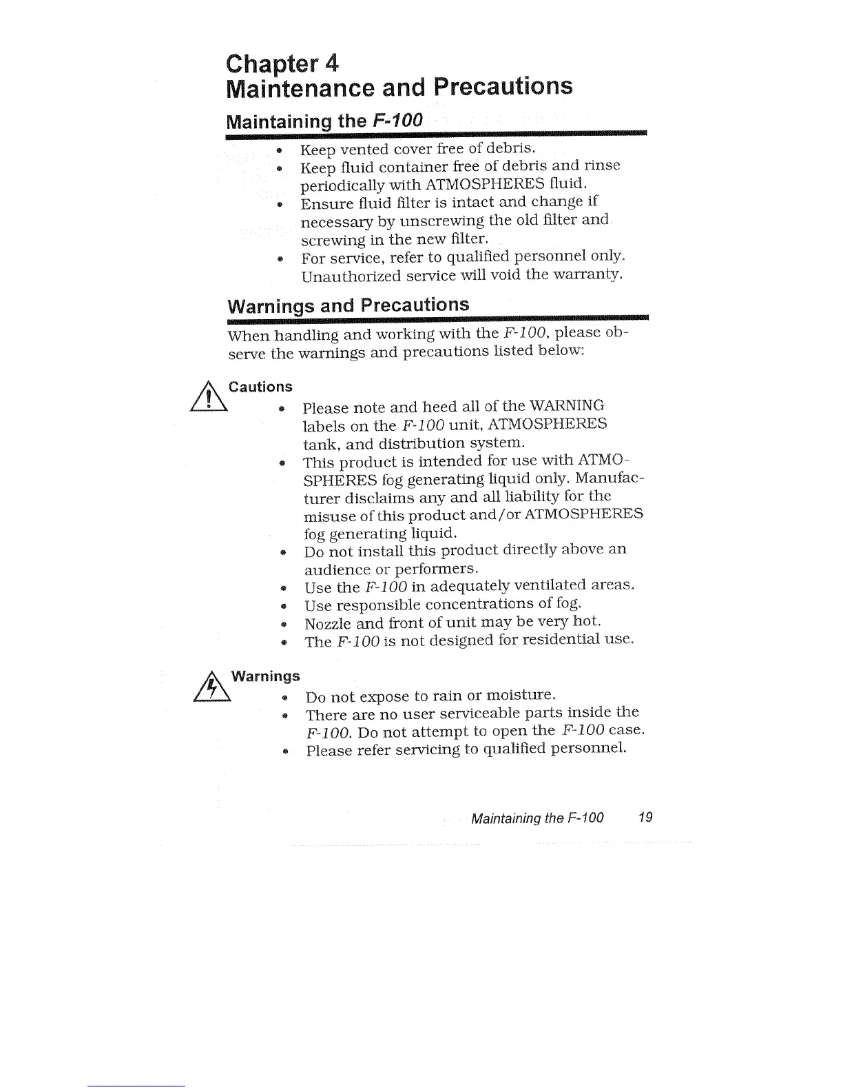 High End Systems F-100 - Maintenance and Precautions
