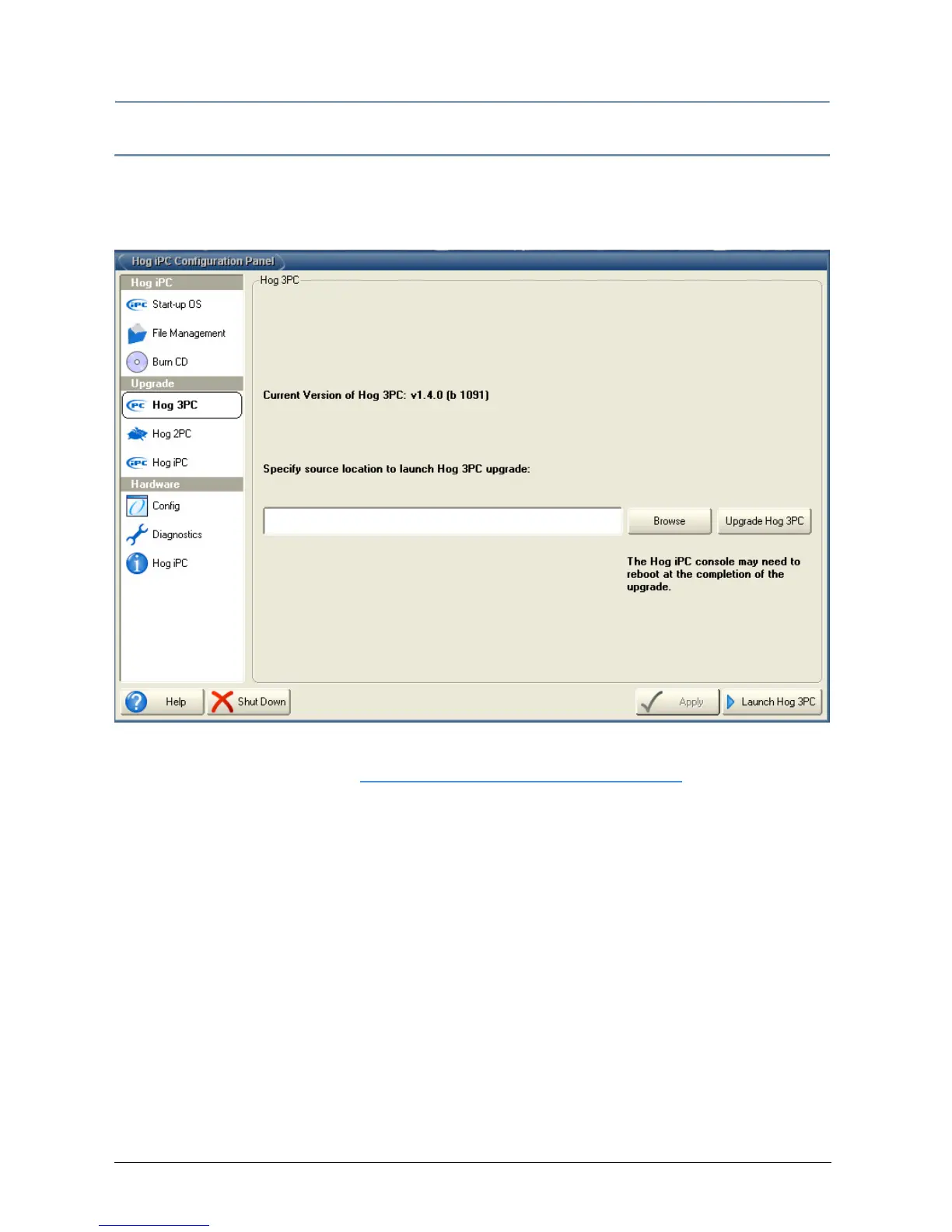 iPC] button to start the upgrade. After the upgrade is complete the Hog iPC console