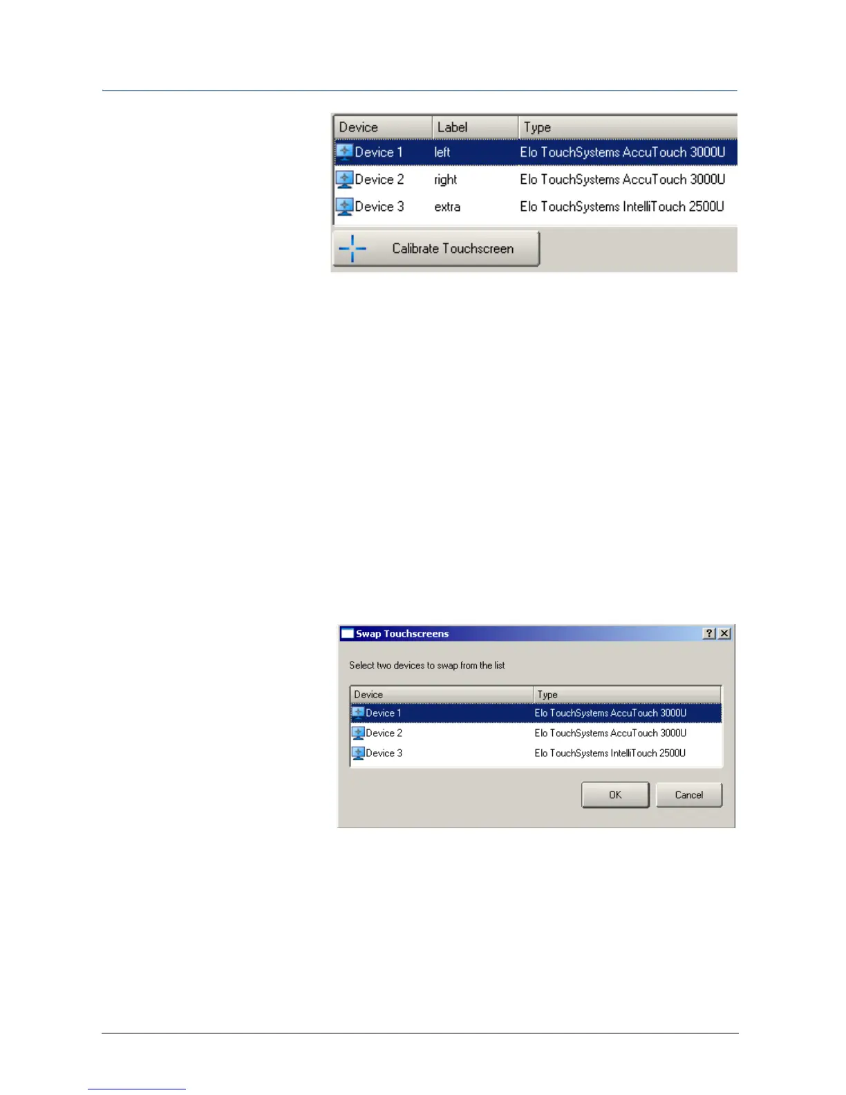 The touchscreen device selection box contains a field called Label you may click in this cell