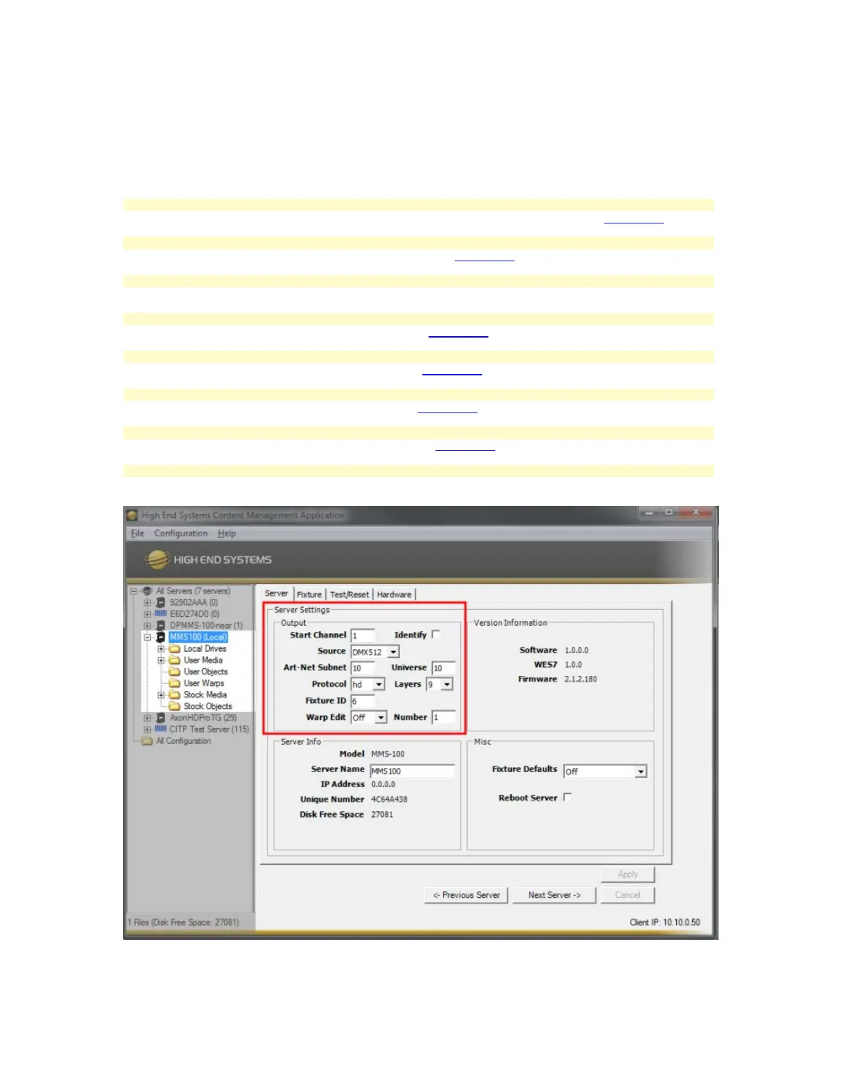 Using the Content Management Application (CMA) with the MMS100 allows all configuration setting to be made from a