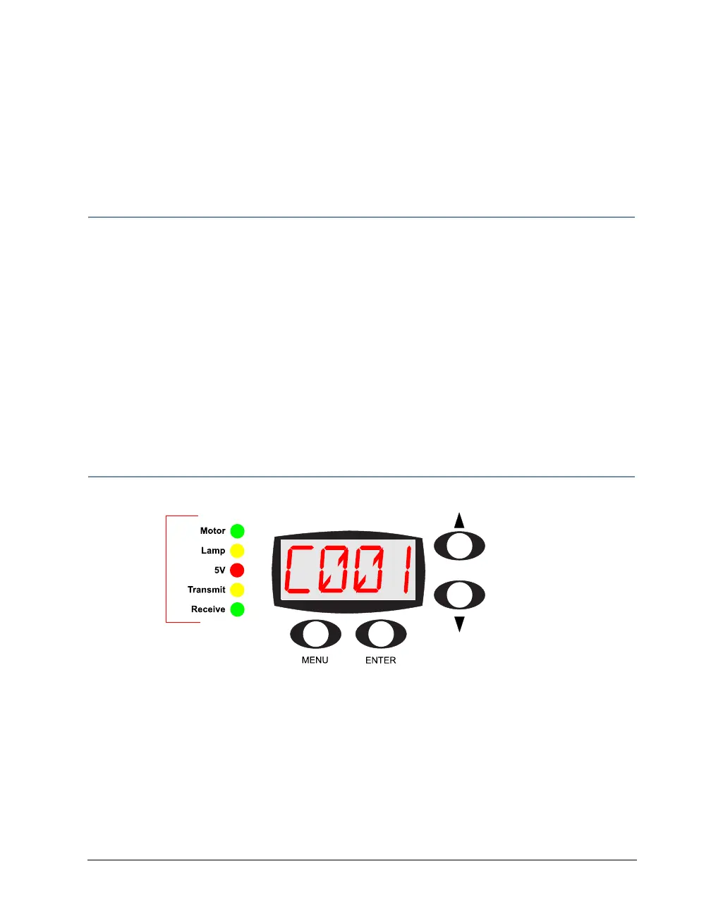 The alphanumeric LED display shows the menu items you select from the menu map. When