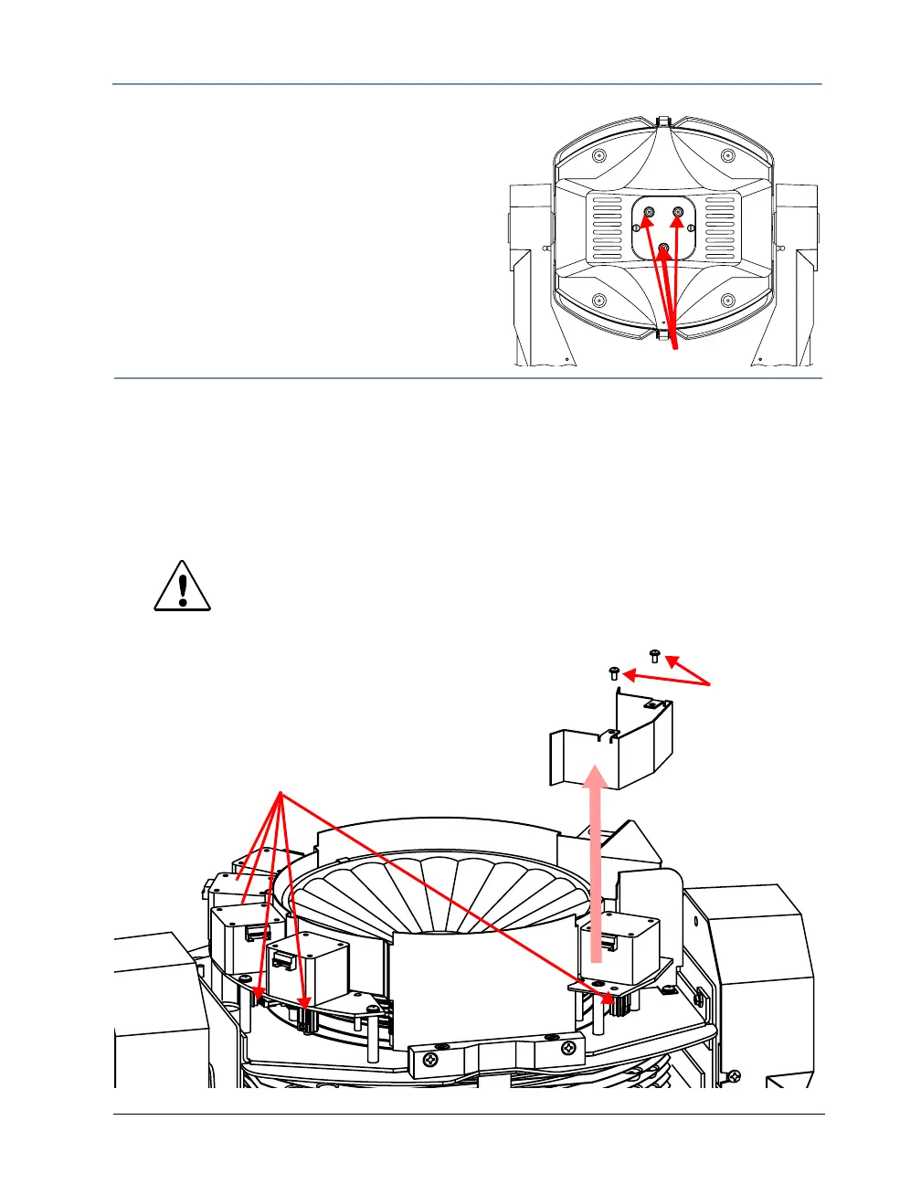 2. Remove 2 screws [A] and lift the Dim/Shutter motor light shield [B].