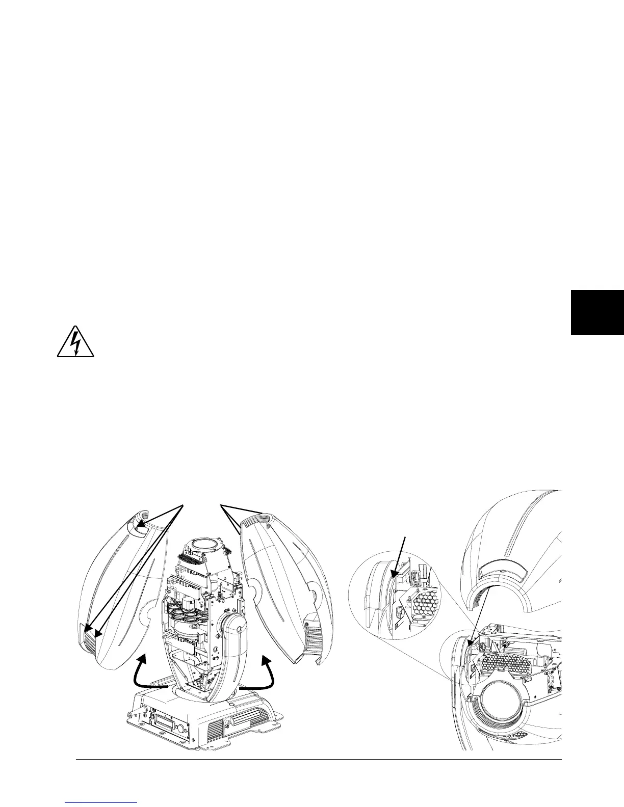 note the warnings under each heading before servicing the fixture.
