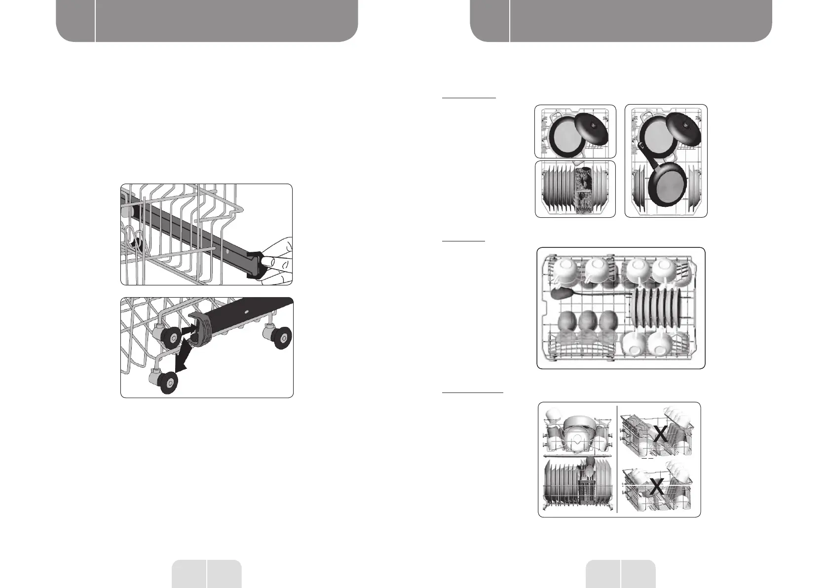 • When the upper basket is in the higher position, large items such as pans can be placed
