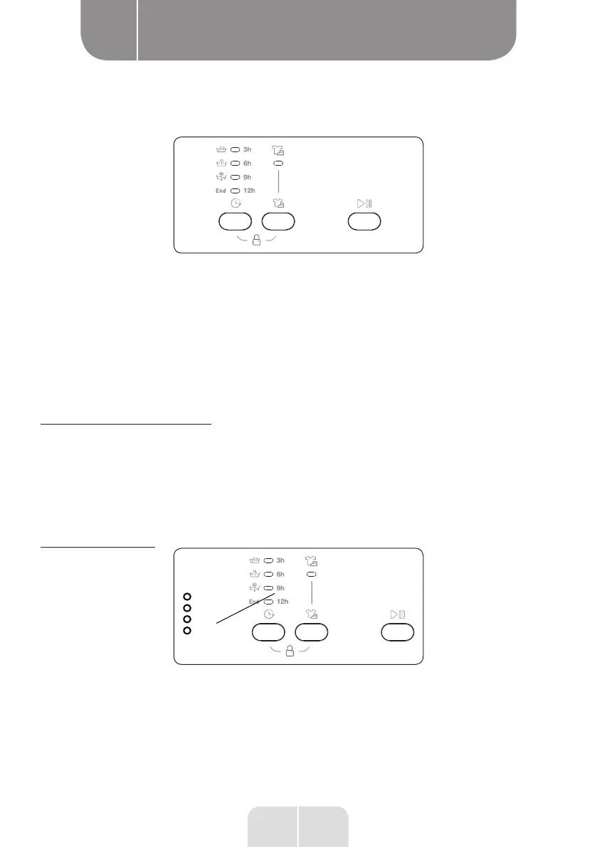• Druk op de toets Uitgesteld starten tot het lampje dat overeenstemt met de gewenste duur