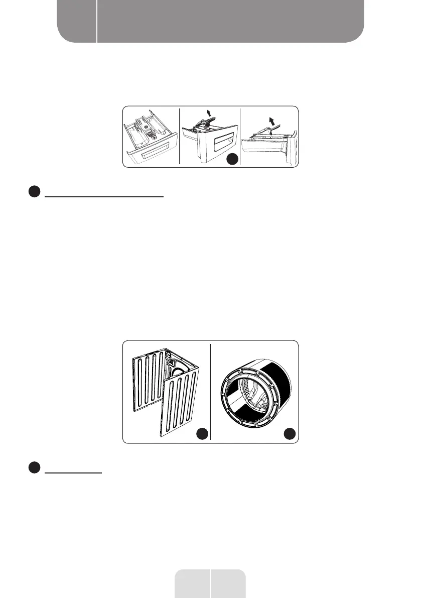 • Retirer le tiroir à produits lessiviels et démonter le siphon