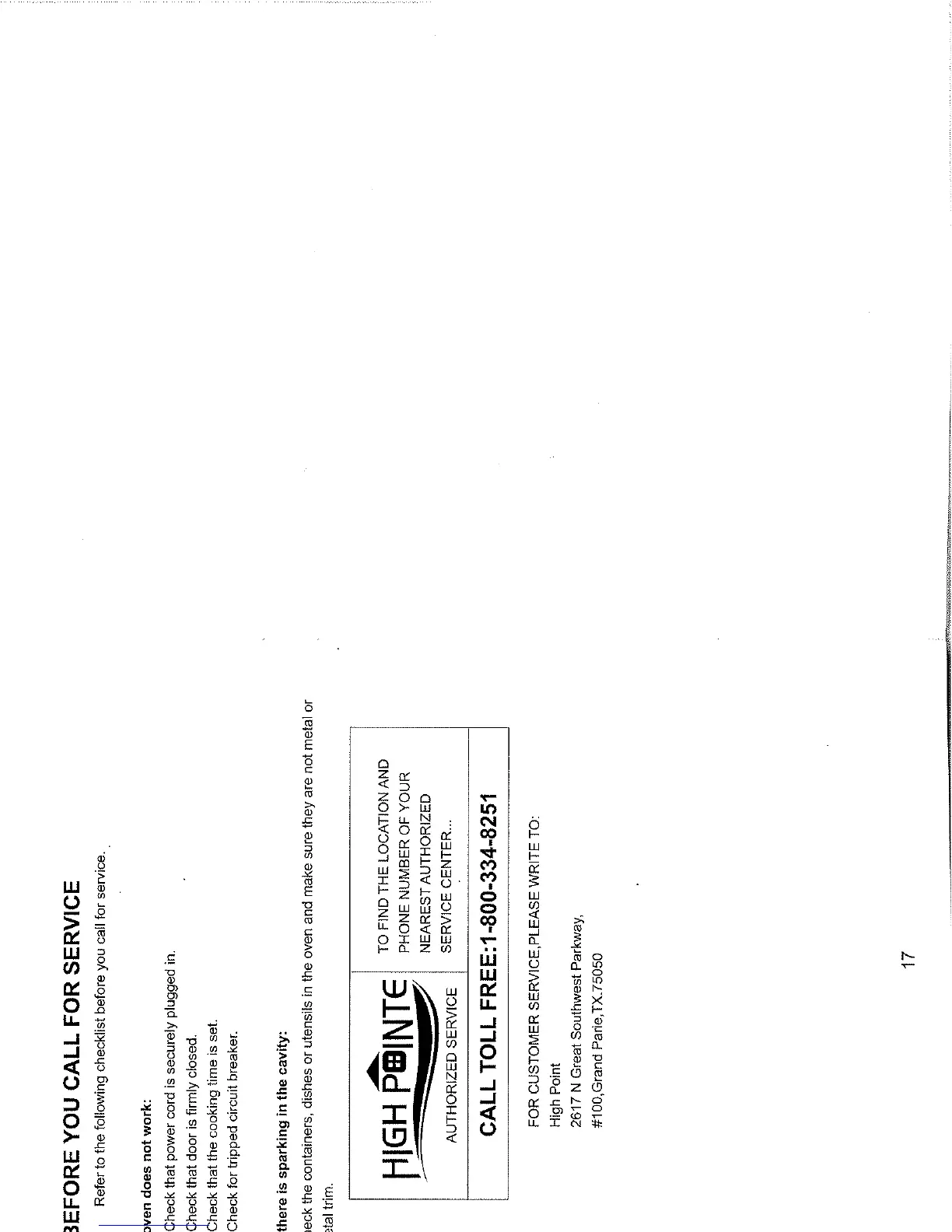 high pointe EC028BSC-B - Microwave Oven Service and Support; Pre-Service Troubleshooting Checklist; Finding Authorized Service Centers