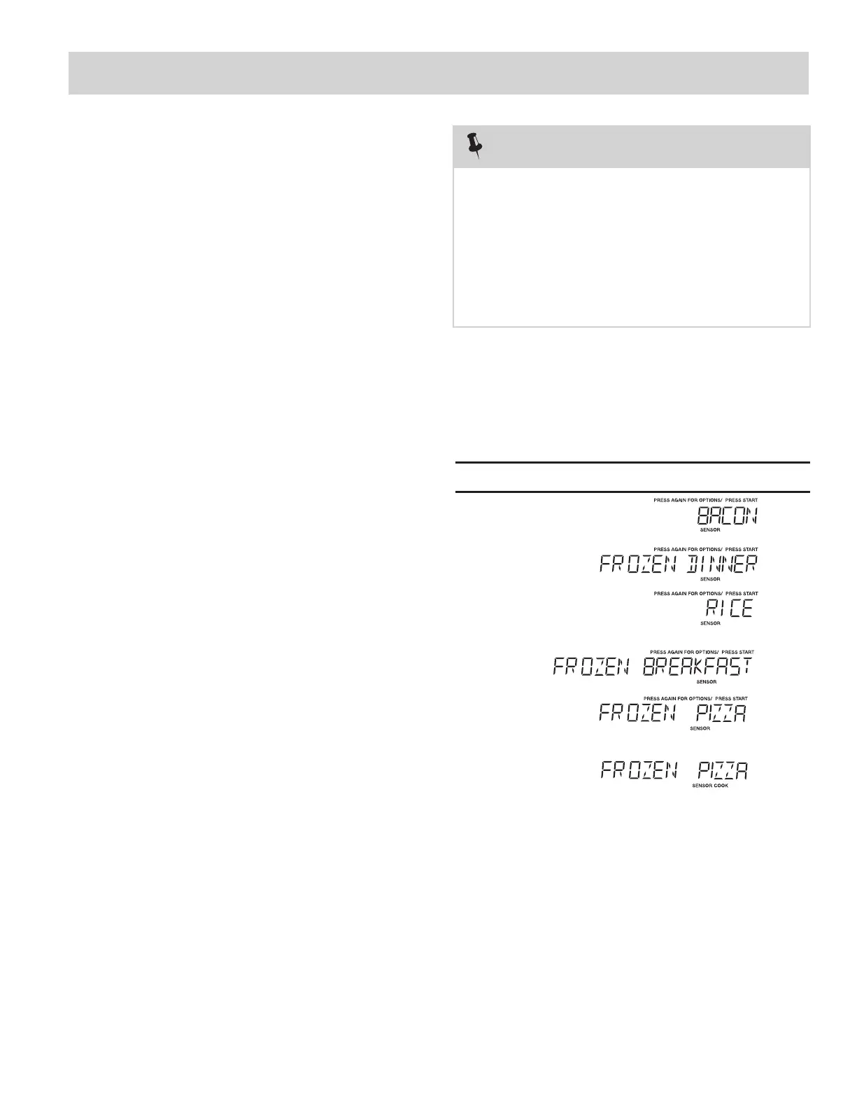 During the first part of SENSOR COOKING, food name will