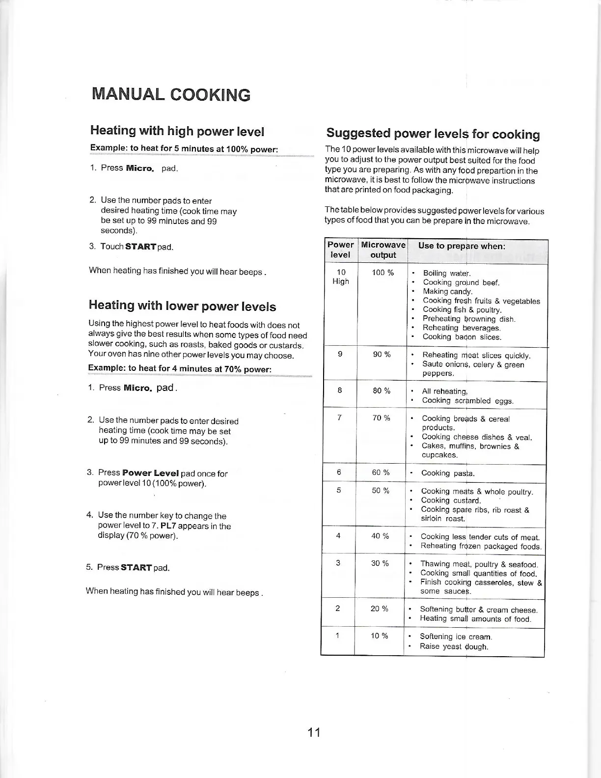 high pointe EC942KIW - Heating with High Power Level; Heating with Lower Power Levels; Suggested Power Levels for Cooking