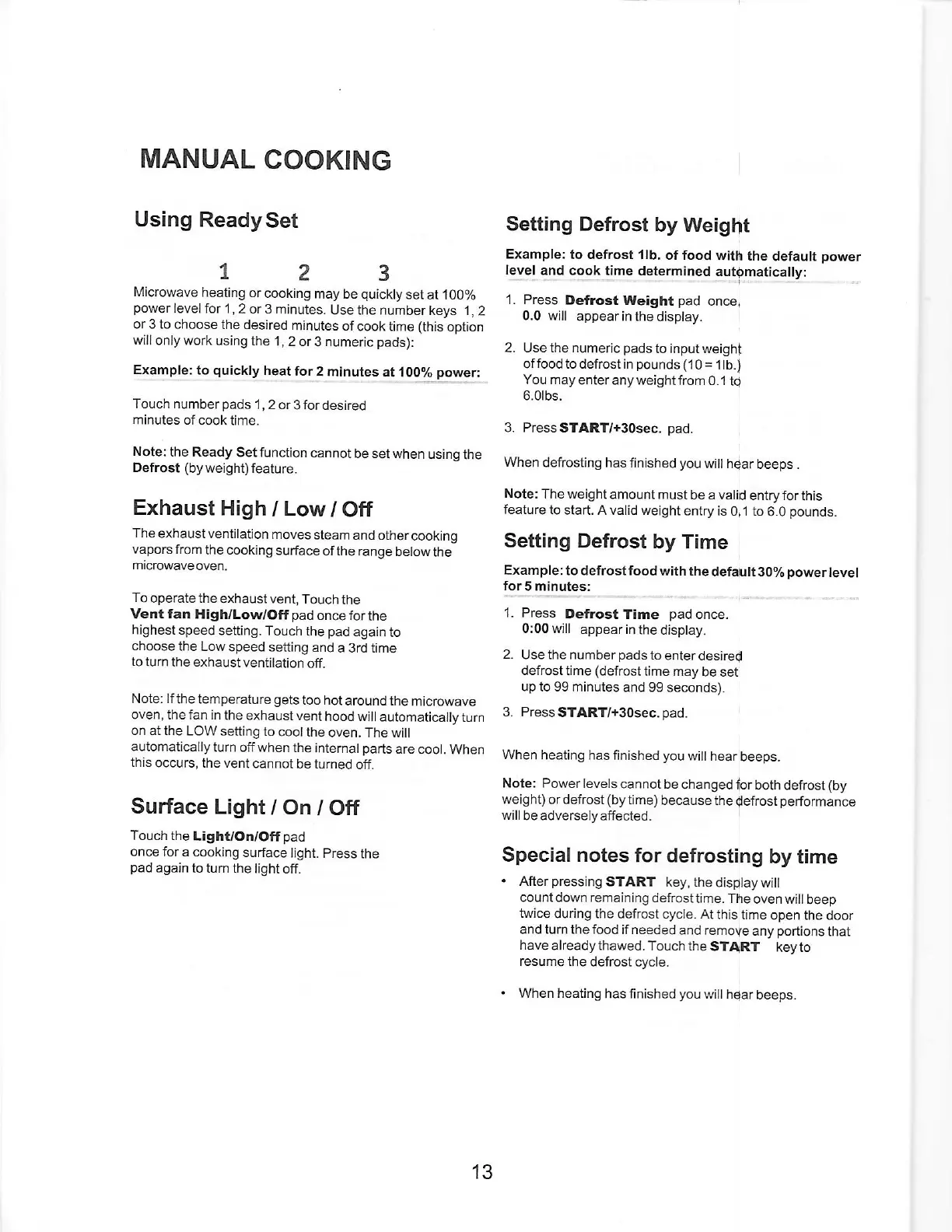 high pointe EC942KIW - Special Cooking Features; Defrosting by Weight and Time