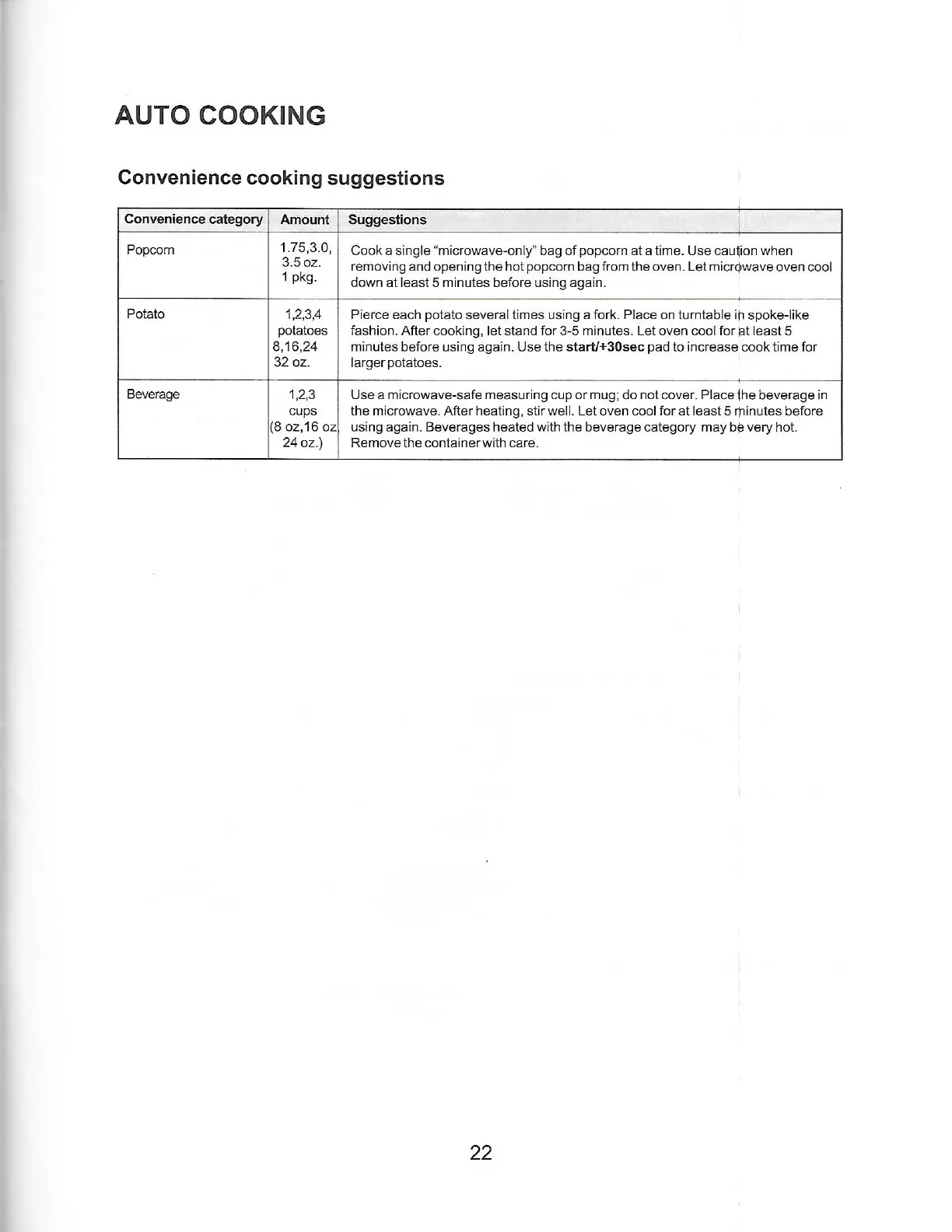 high pointe EC942KIW - Auto Cooking; Convenience Cooking Suggestions