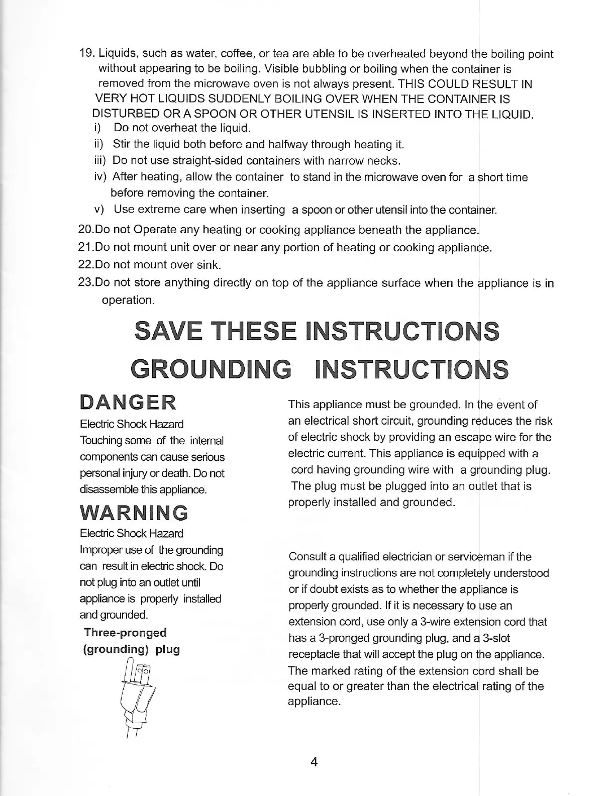 high pointe EC942KIW - GROUNDING INSTRUCTIONS