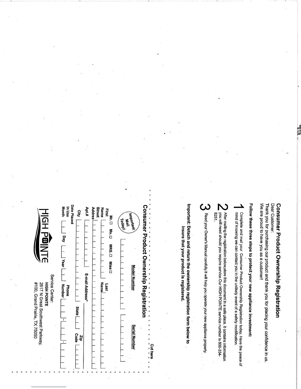 high pointe EM925BSC - Consumer Product Ownership Registration