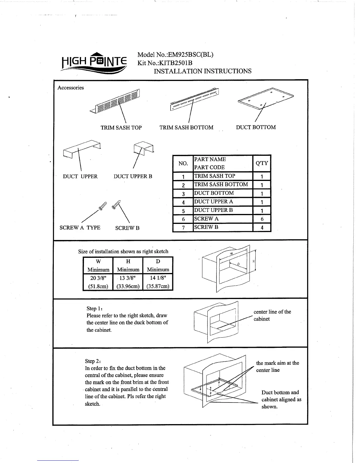 high pointe EM925BSC - Installation Instructions; Accessories