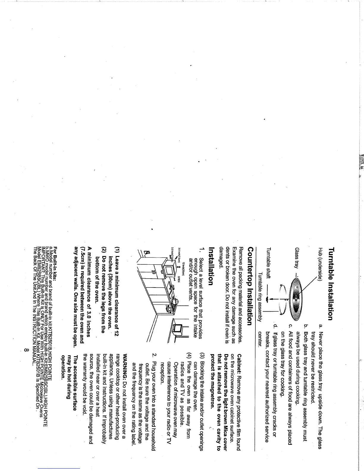 high pointe EM925BSC - Turntable Installation; Countertop Installation