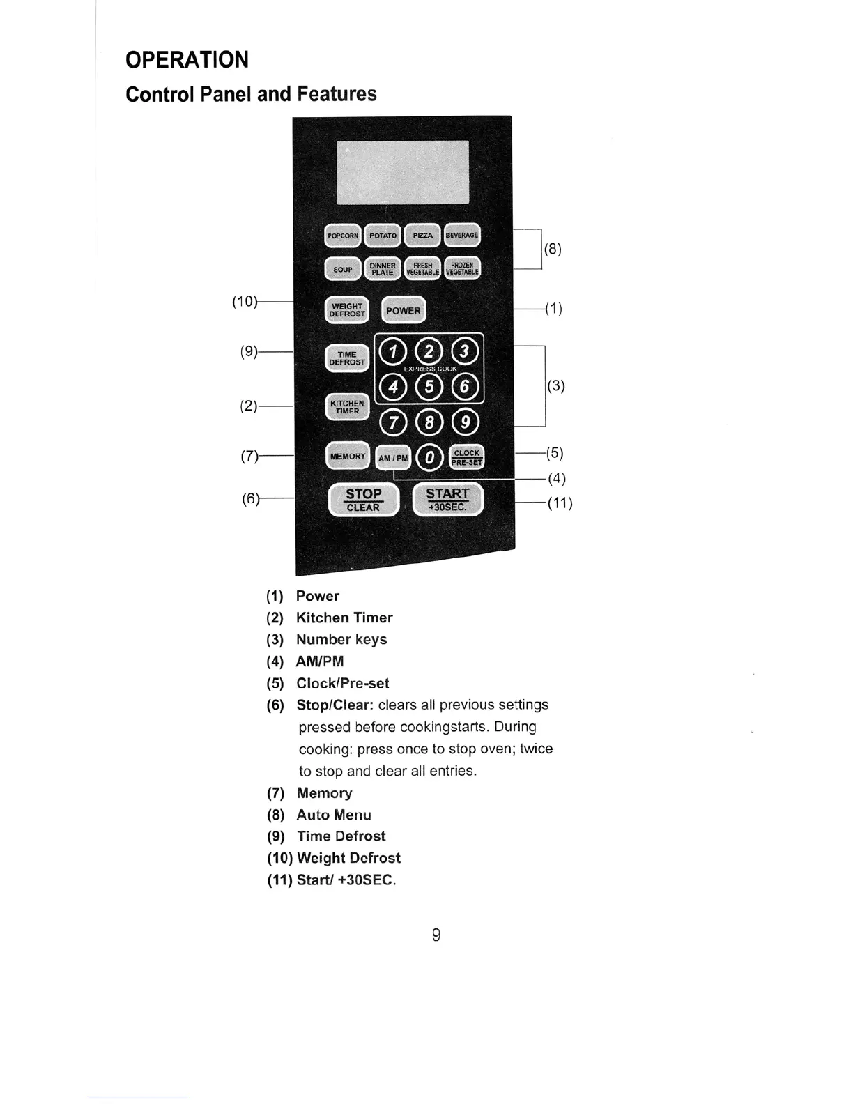 high pointe EM925RSL-B - Operating Your Microwave; Control Panel Overview