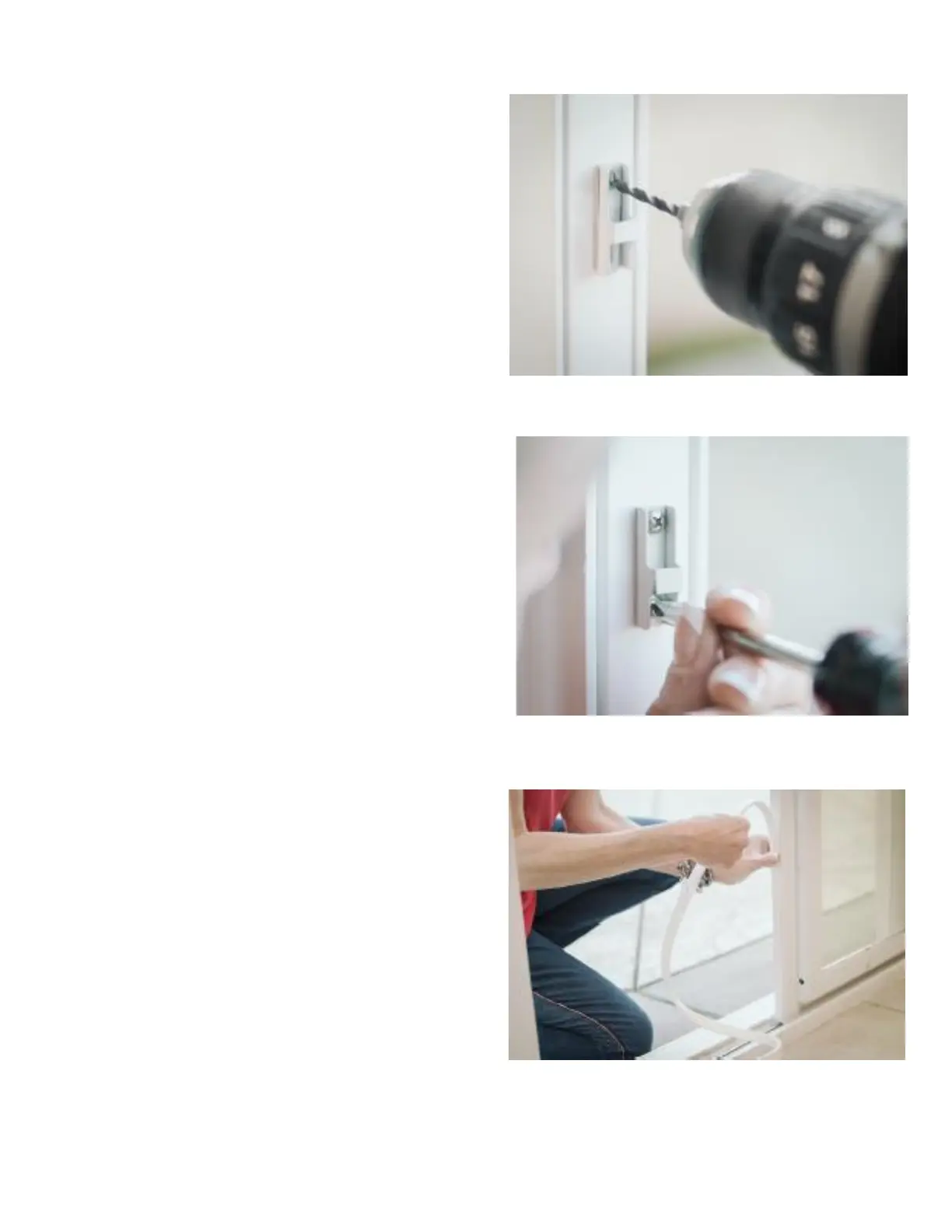 drilling a 1/4” hole at the bottom of your stationary patio door and 2 small holes in your sliding glass