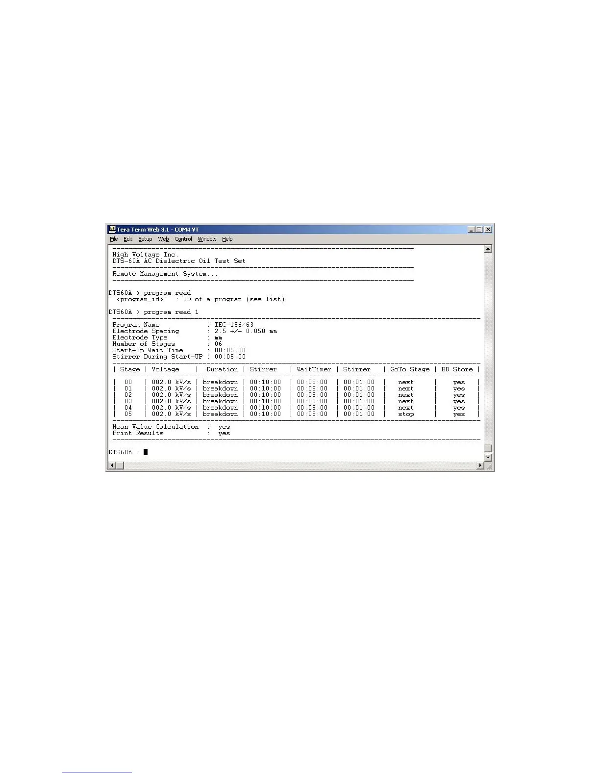 Test Name, the Electrode Type and Spacing, the Number of Stages, as well