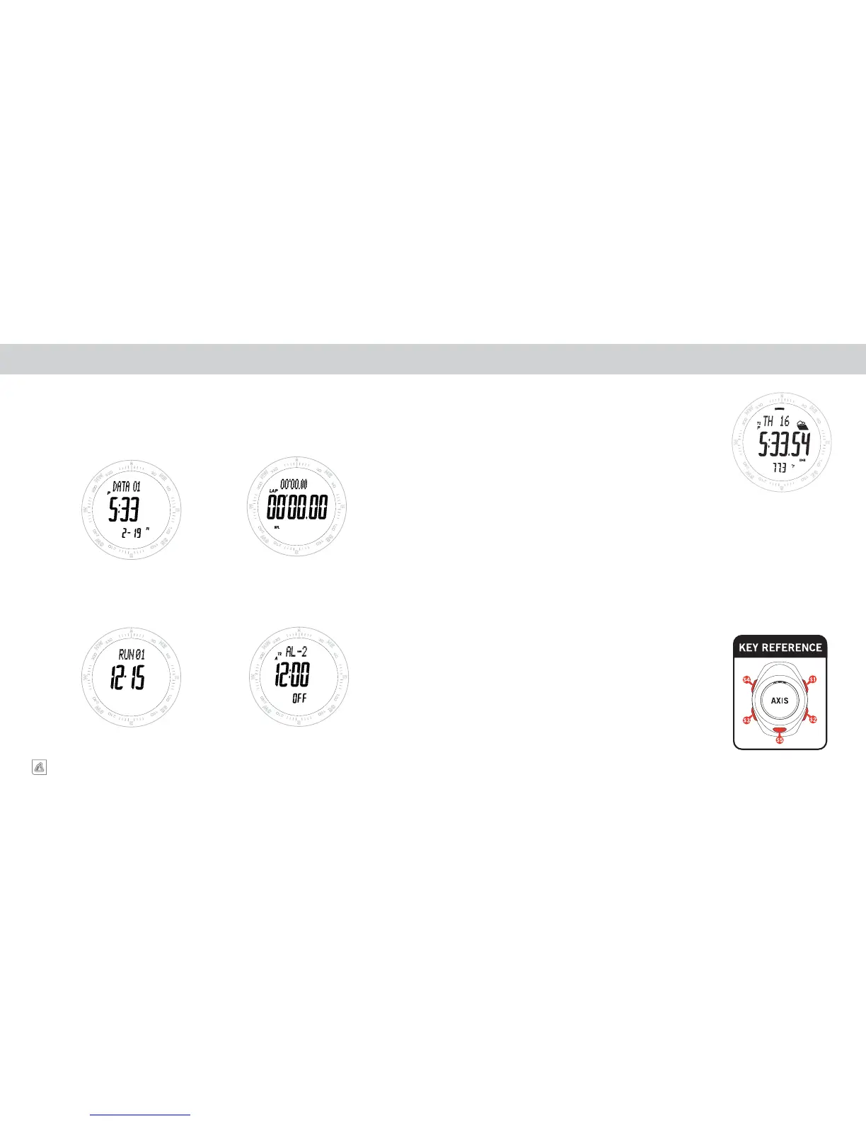 Day, Day/Date/Day of Week, Two Time Zones and Two Daily Alarms.