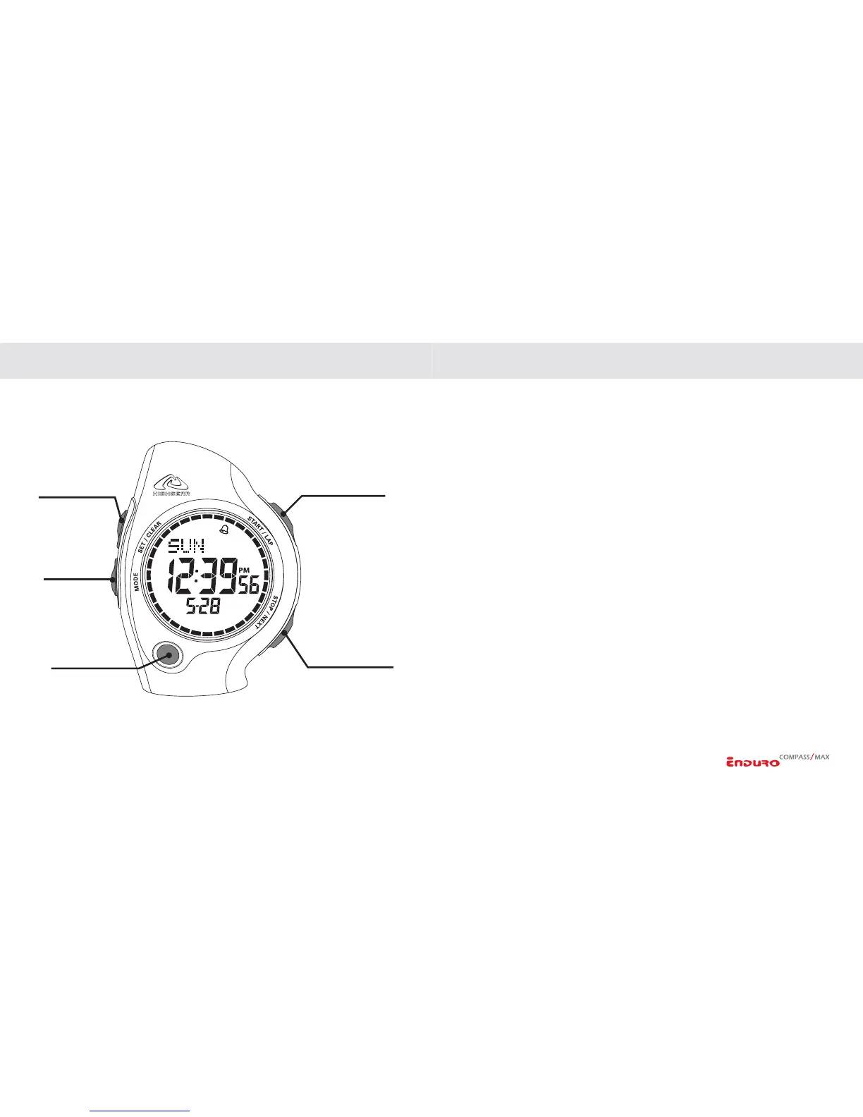 The Enduro has 5 individual keys. Each key has several functions. The drawing identifies