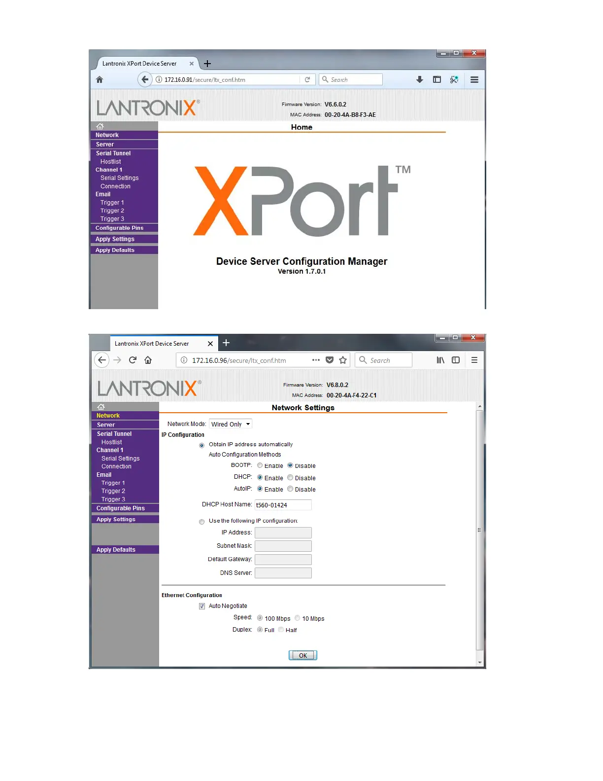 Figure 6-4. XPort Network Settings