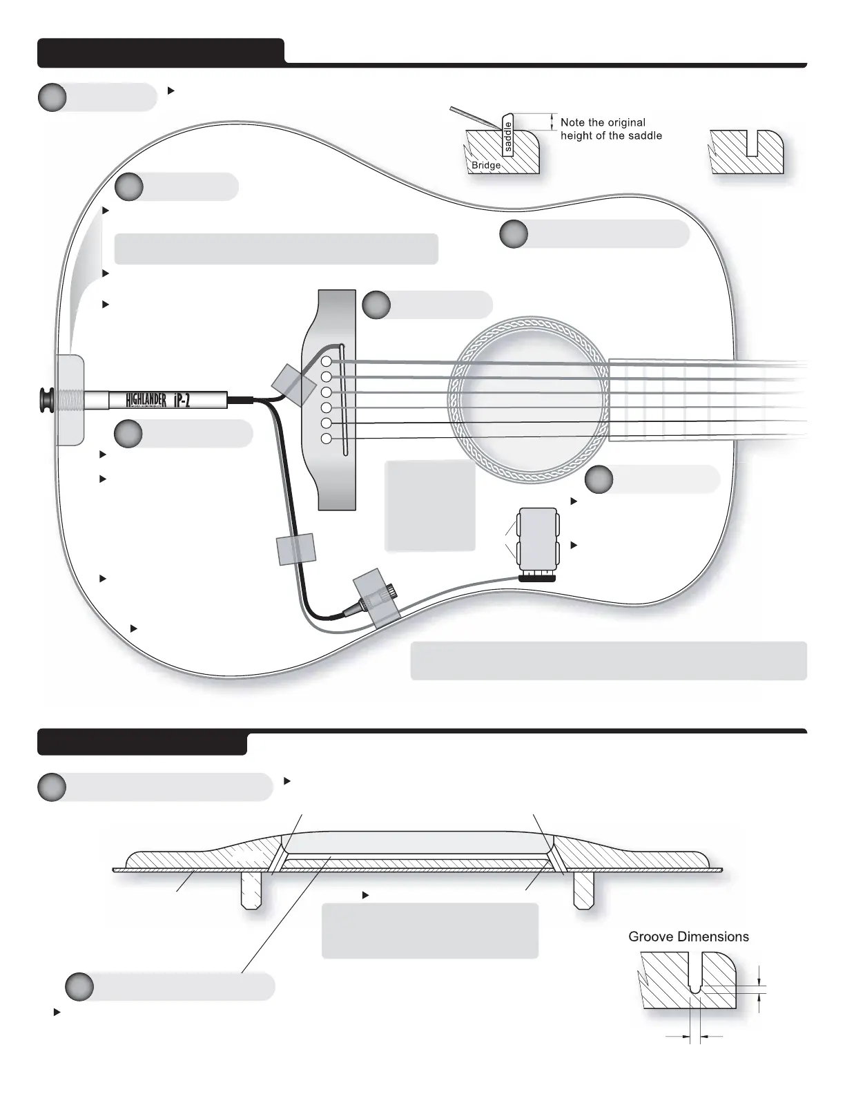 The performance of the Highlander Pickup is optimized by embedding it in a groove in the bridge. This