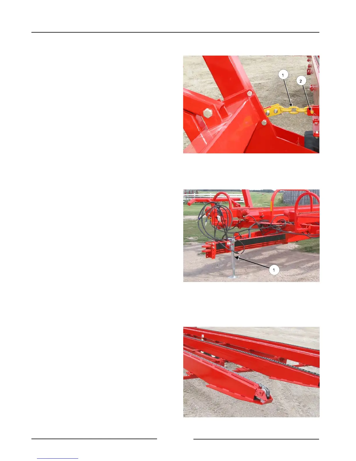 9. Fasten both lift arm transport chains (1) in