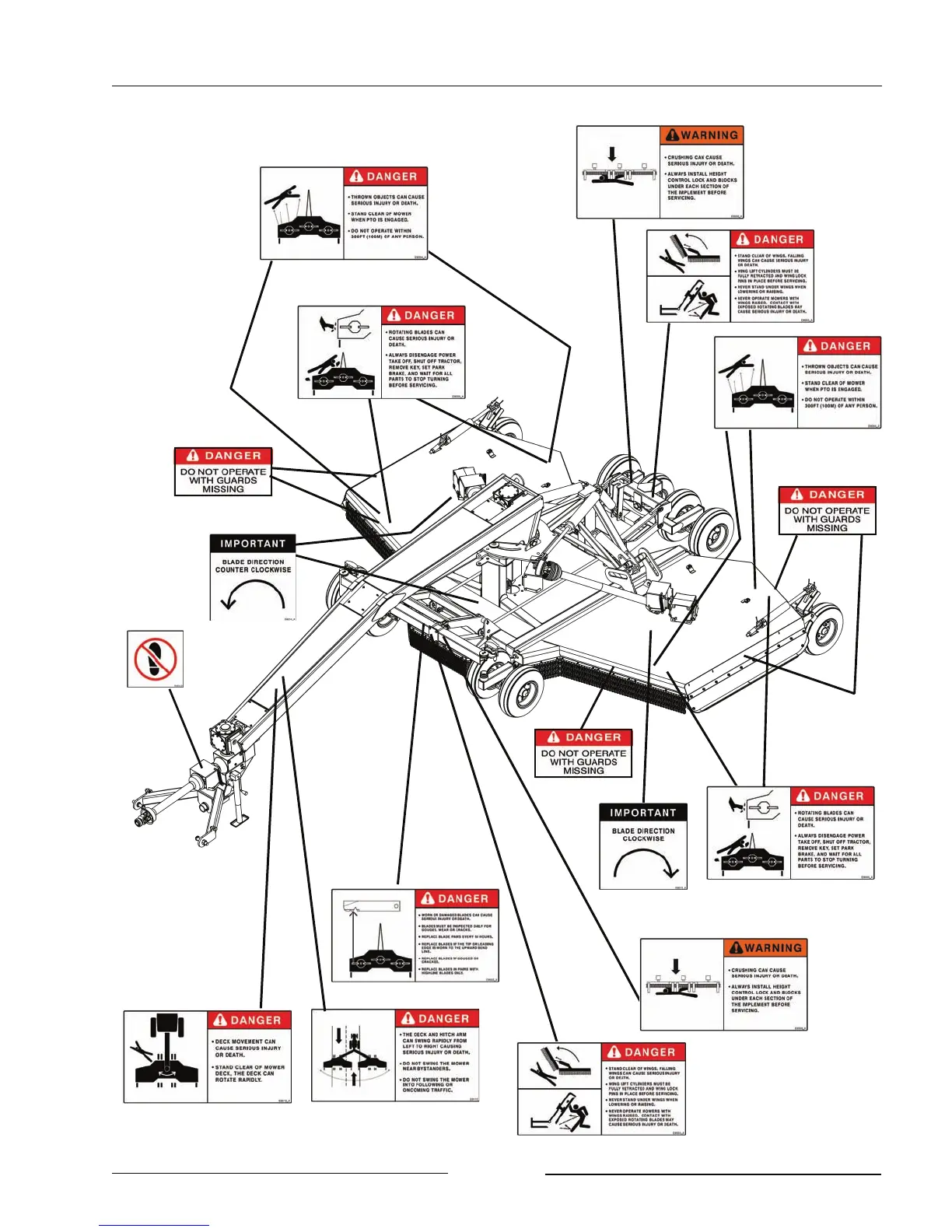 HighLine RCH Mower - Safety Decal Locations Diagram