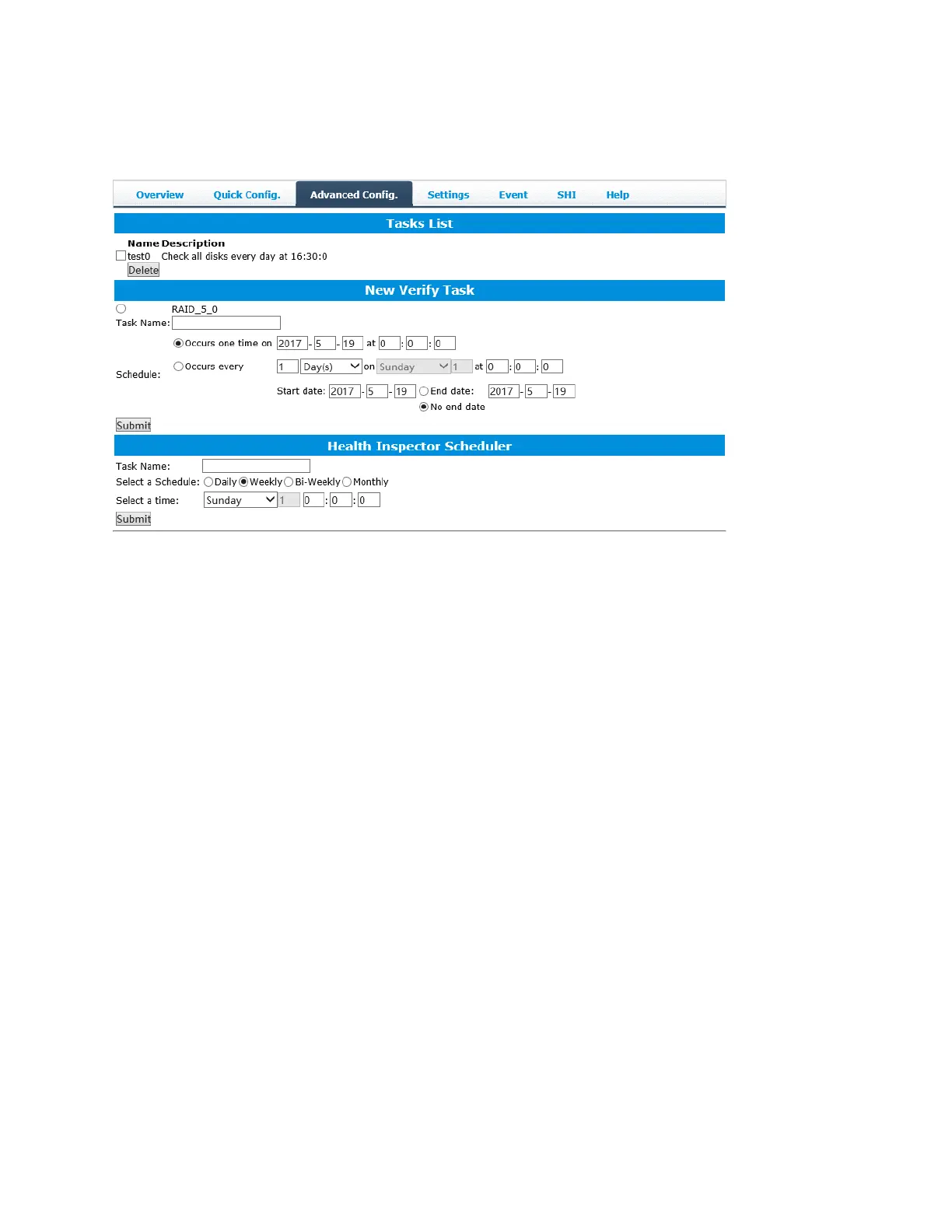 The Scheduler enables you to schedule disk/array checkups to ensure disks/array are functioning