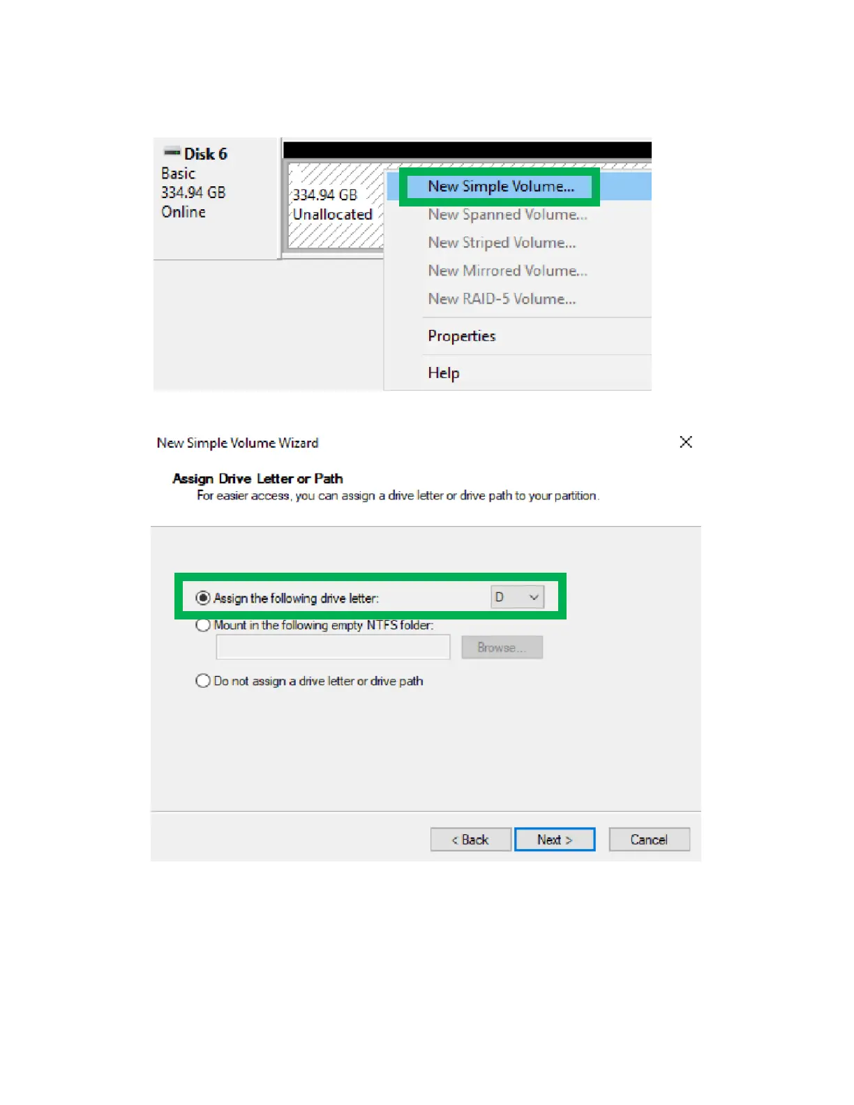 4. Once initialized, right click the unallocated disk space for your disk and select New Simple