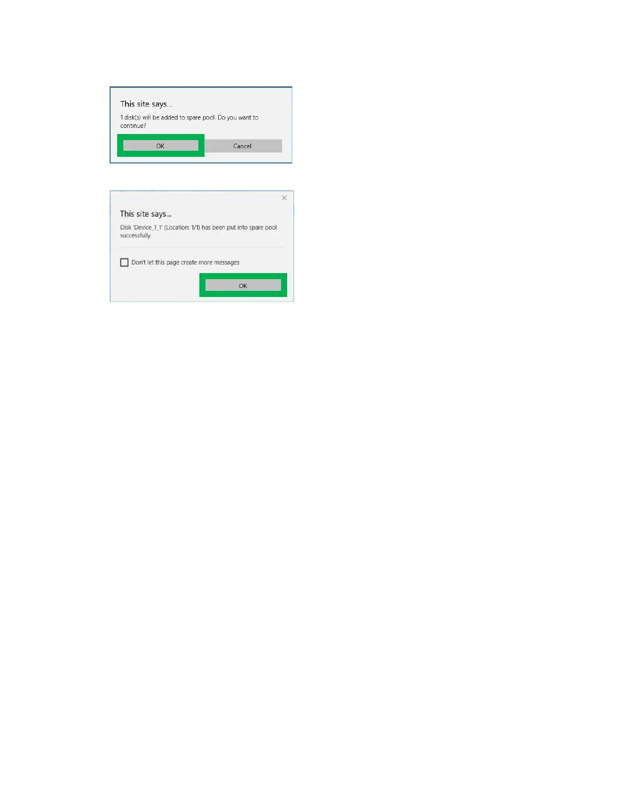 5. The disk has now been assigned as a spare. Click OK to confirm: