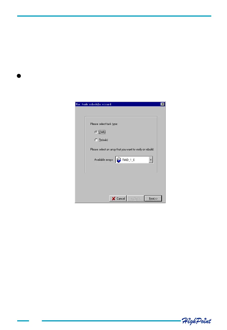 There are two types of tasks that can be scheduled: Verify Array, or Rebuild Array. If