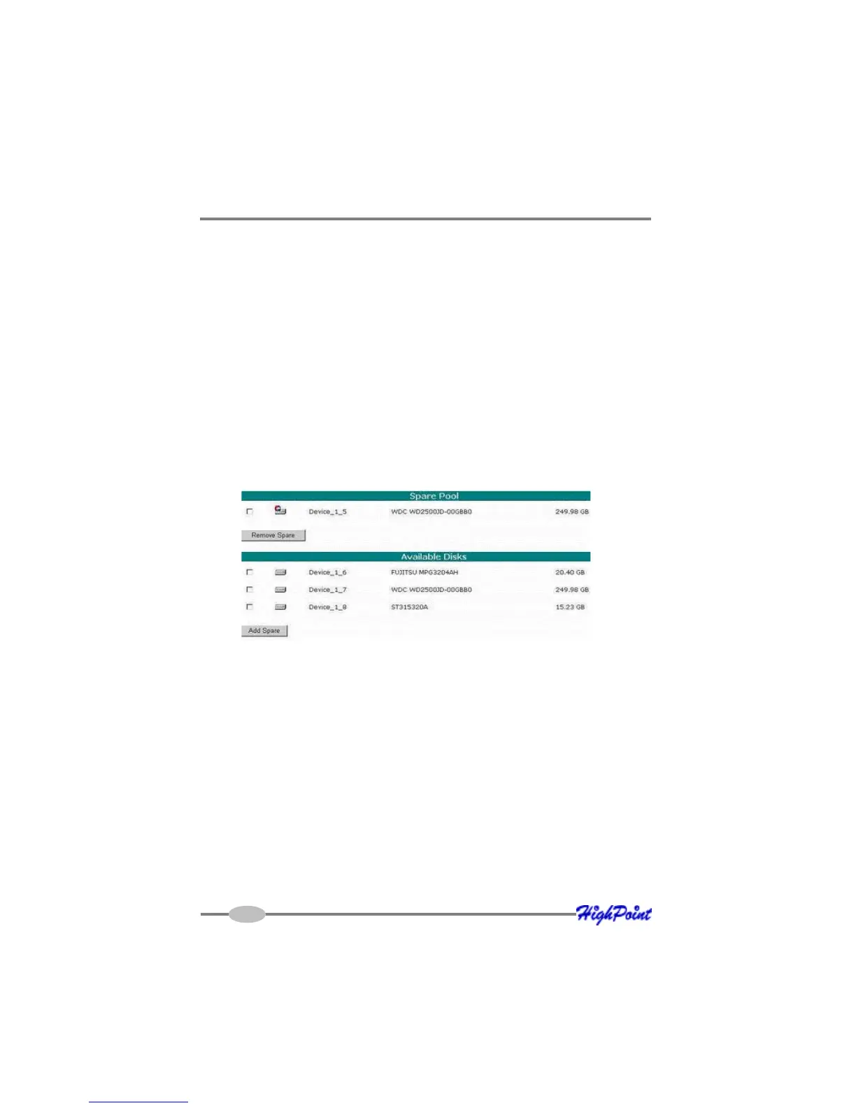 To remove a spare disk, select it from the Spare Pool list and click the Remove Spare