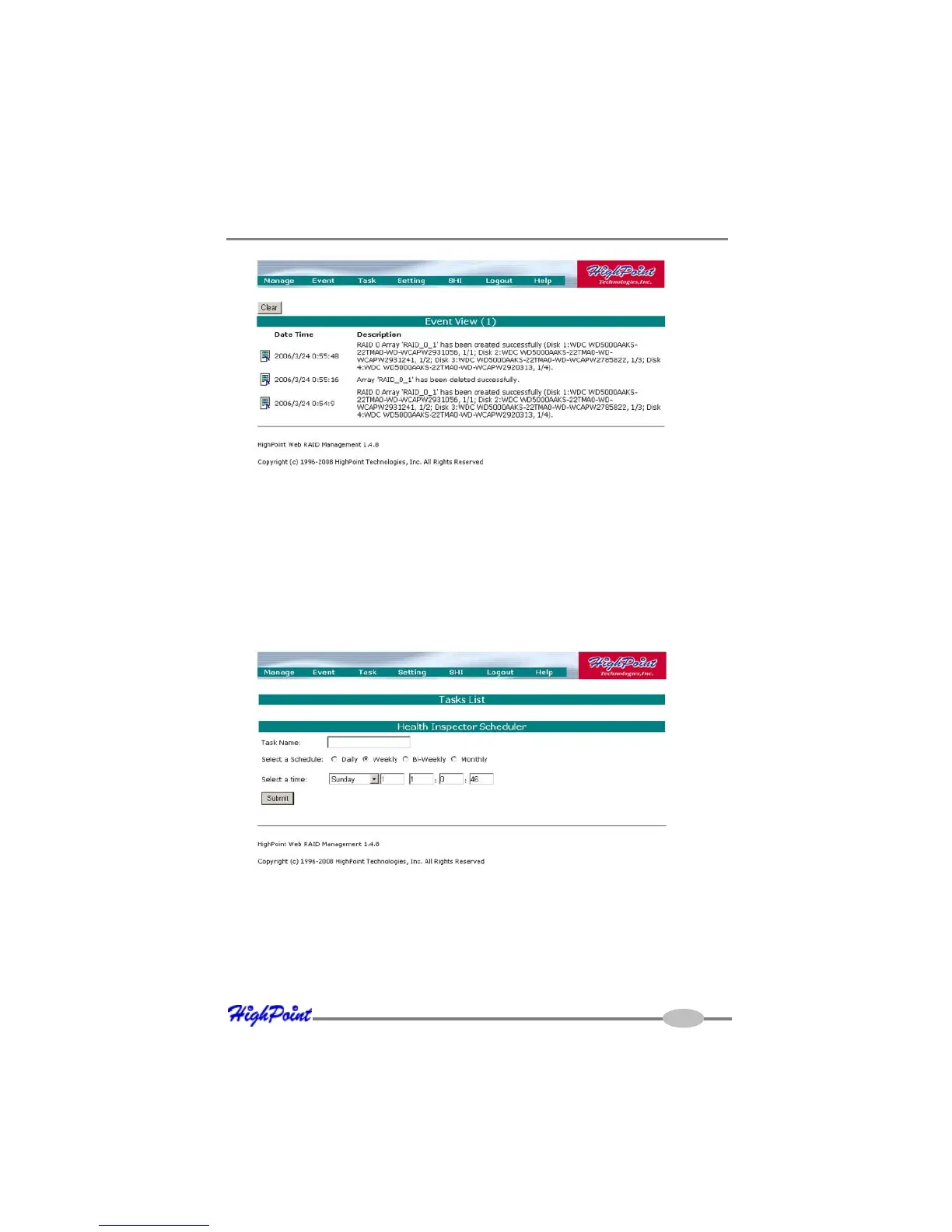 RocketRAID 2640X4 Web-RAID Management Interface
