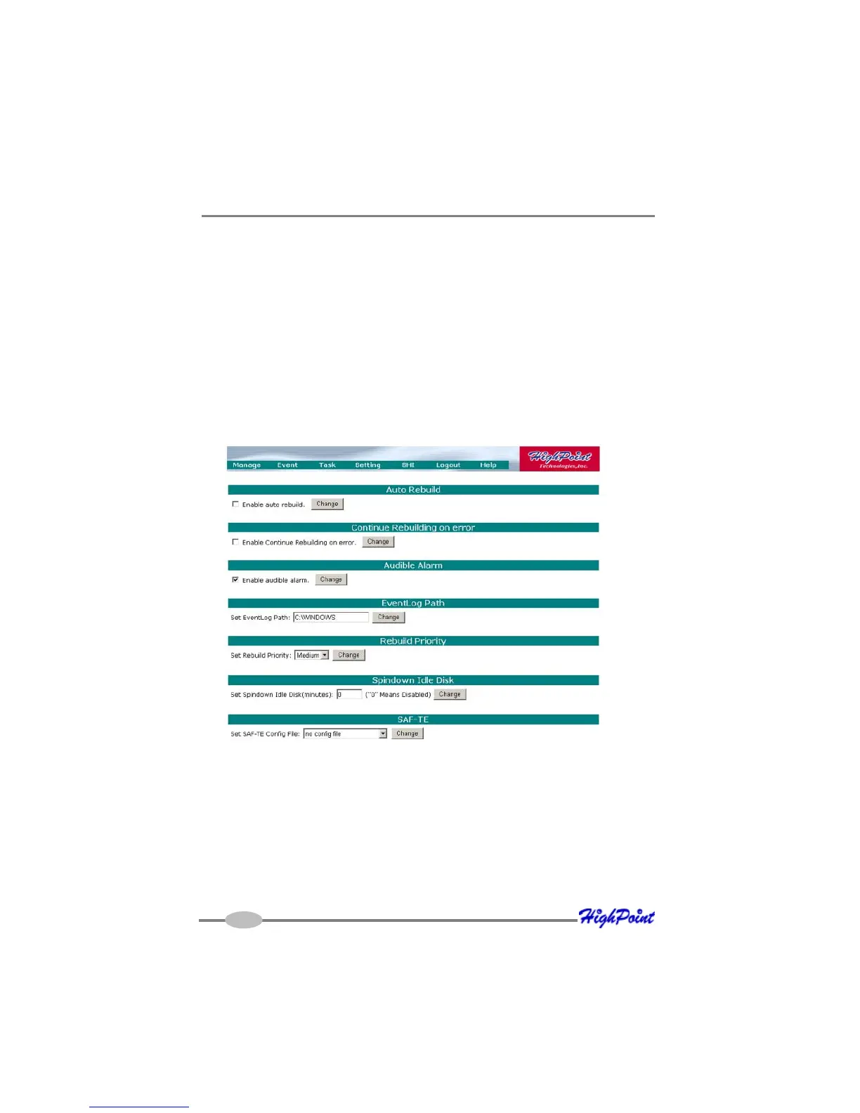 This setting enables and disables the RocketRAID host adapter’s alarm.